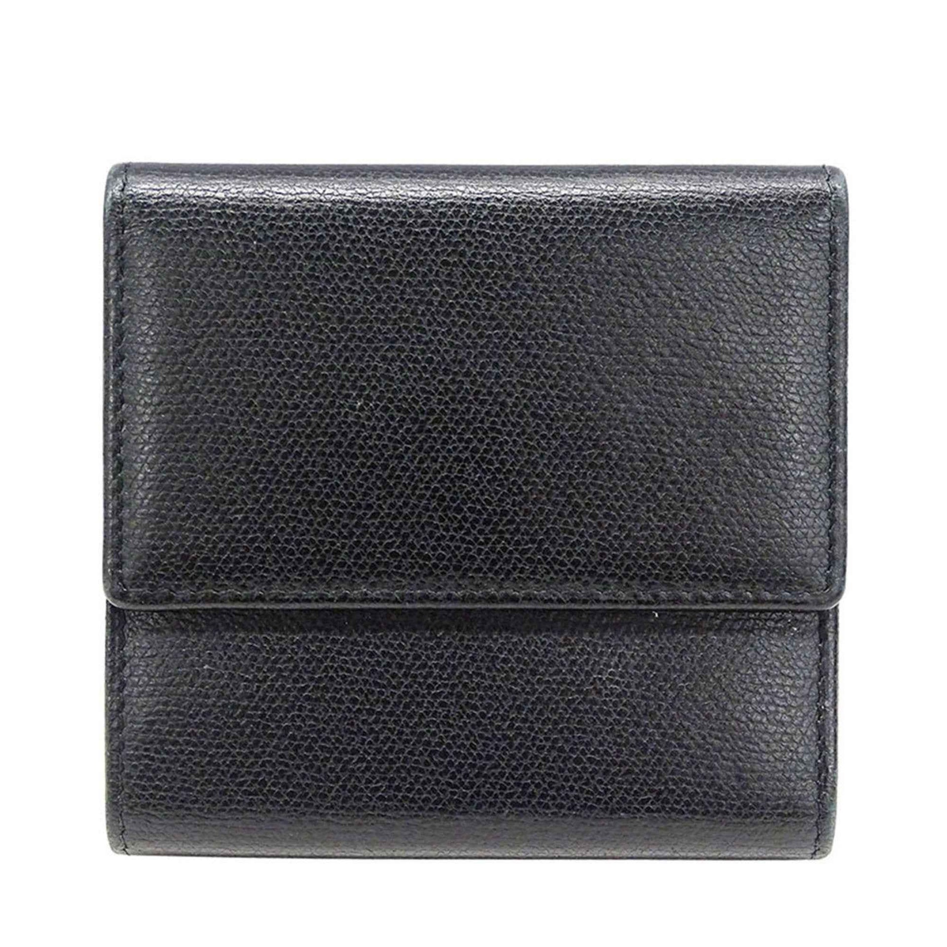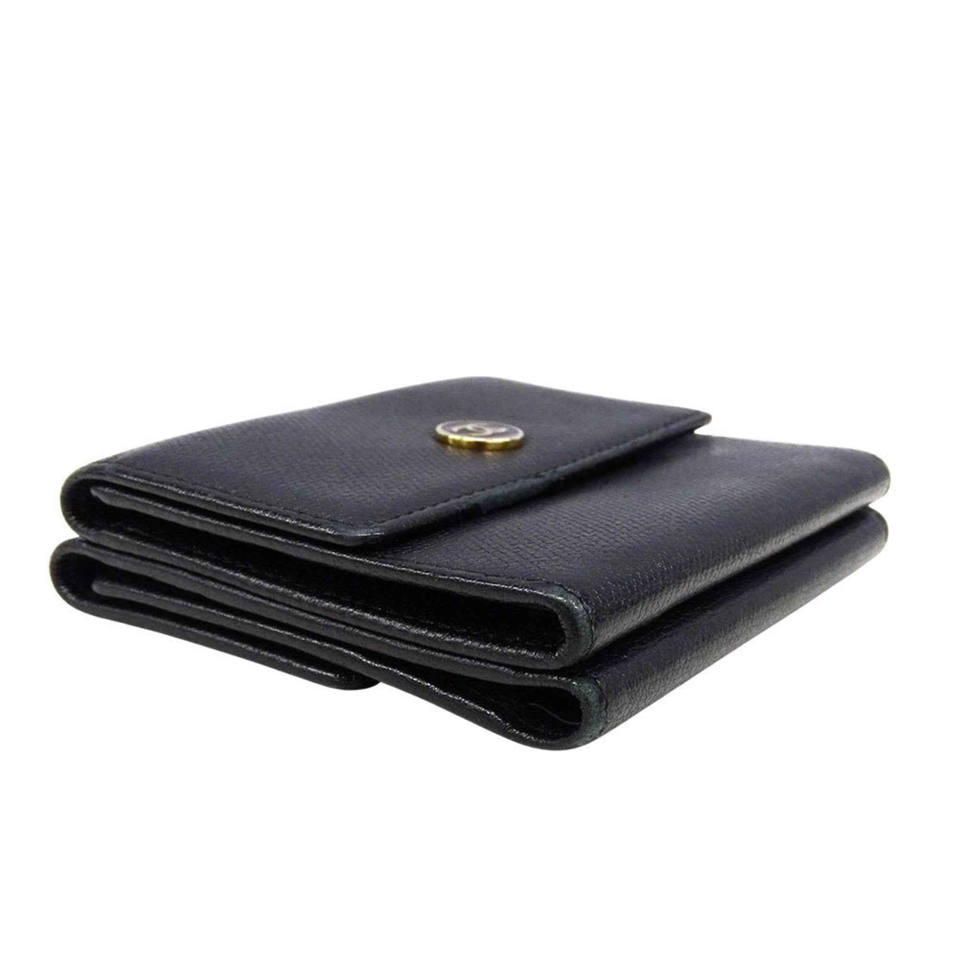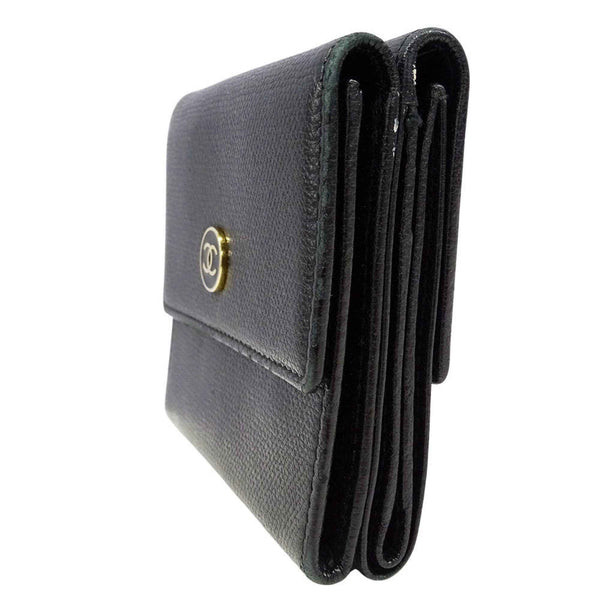 Chanel Women\'s Bifold Wallet with Coco Button, Black Leather, Solid Color, Logo
