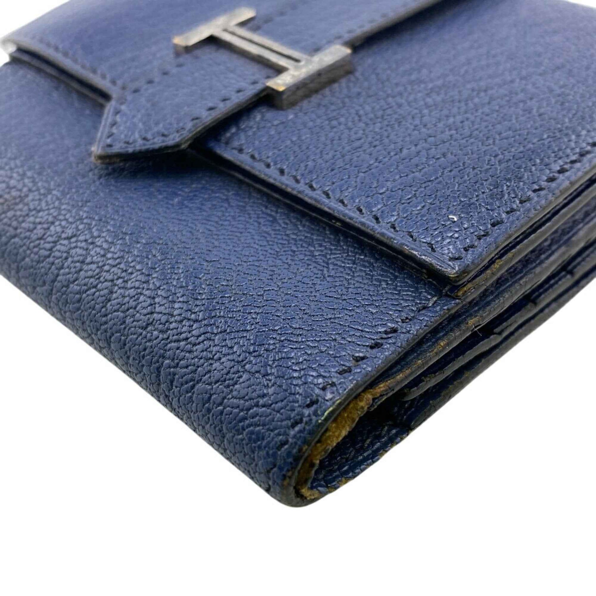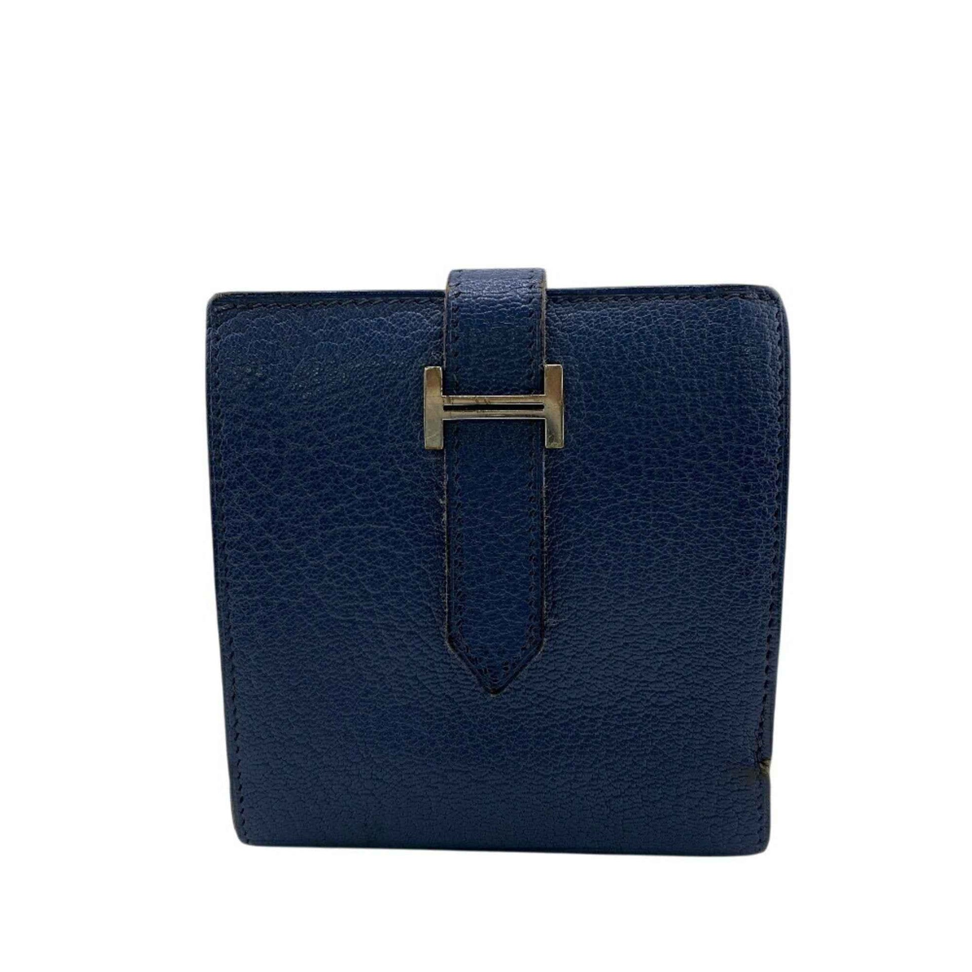 HERMES Flap Bearn Recto Verso Tri-fold Wallet Blue Unisex