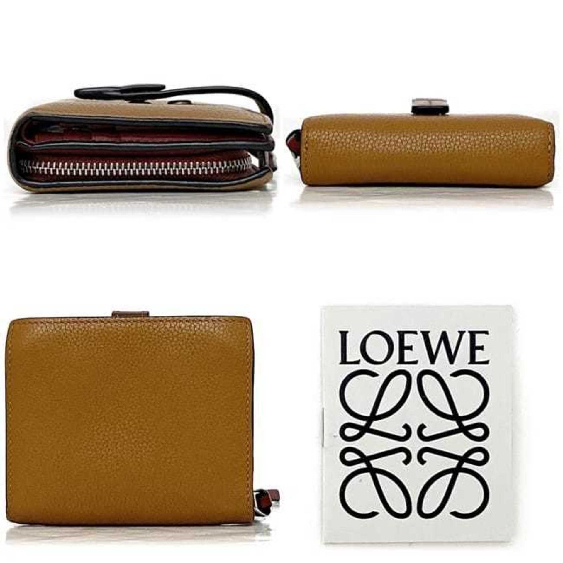 LOEWE Bi-fold Wallet ec-23032 Brown Anagram C660Z41X01 Leather 262026 Compact Folding Grain Genuine Women\'s Engraved Bi-color