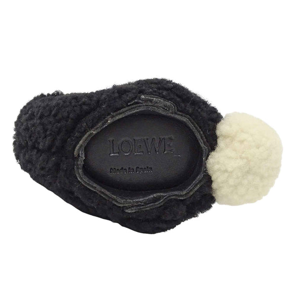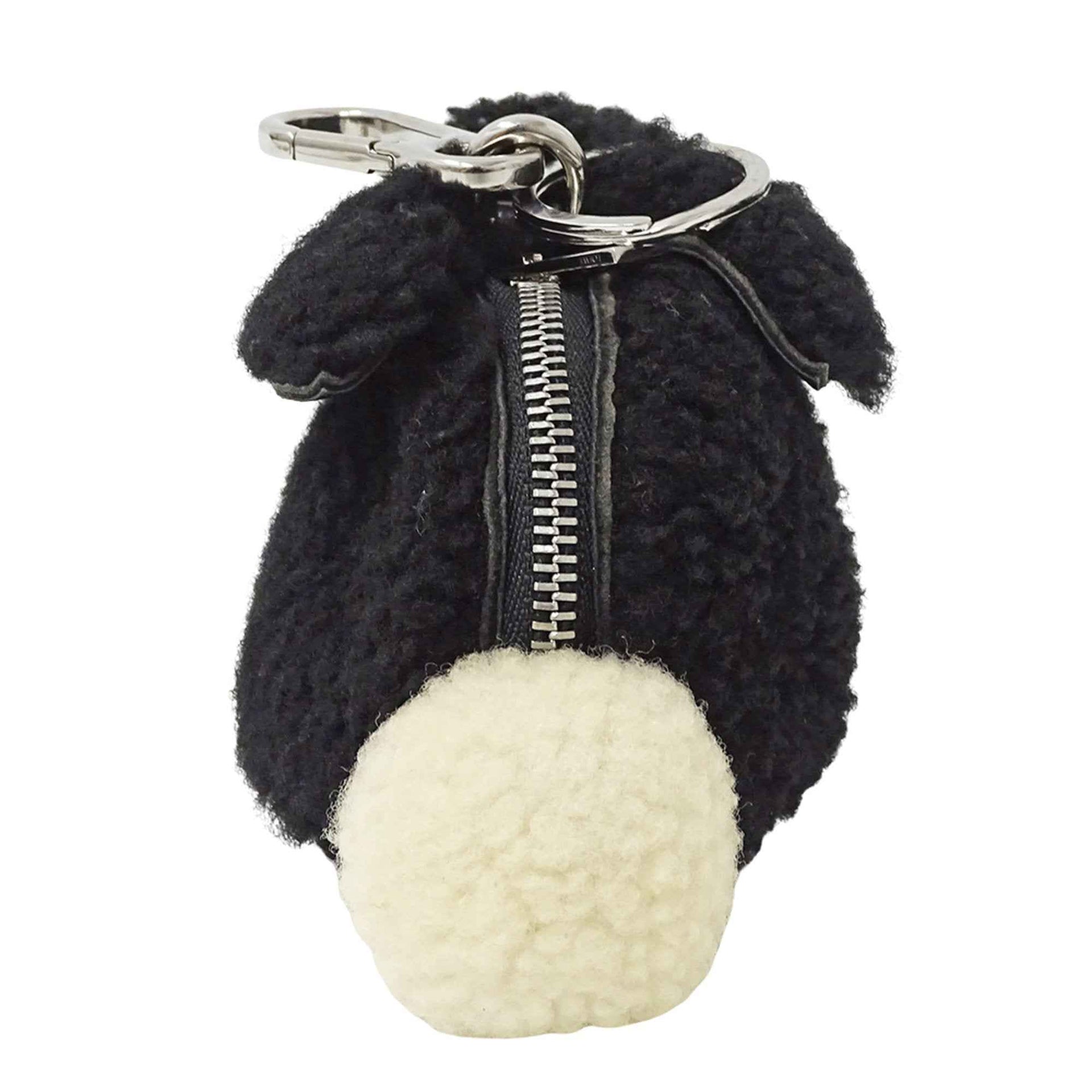 LOEWE Women\'s Brand Wallet/Coin Case Bag Charm with Black Rabbit Boa Design, Key Ring