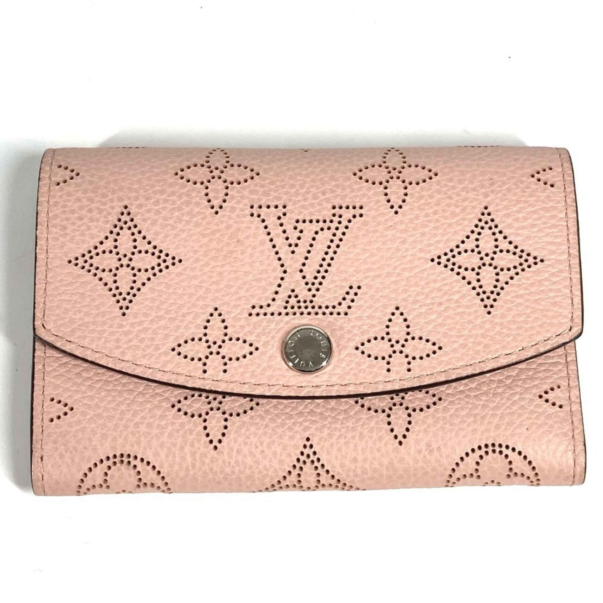LOUIS VUITTON M64050 Monogram Mahina Porte Monnaie Anae Compact Wallet with Flap Coin Case, Bifold Wallet, Mahina, Women\'s, Magnolia Pink