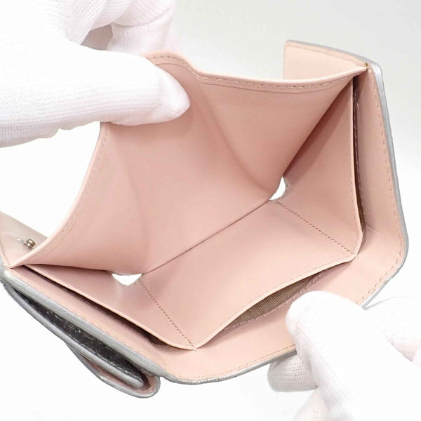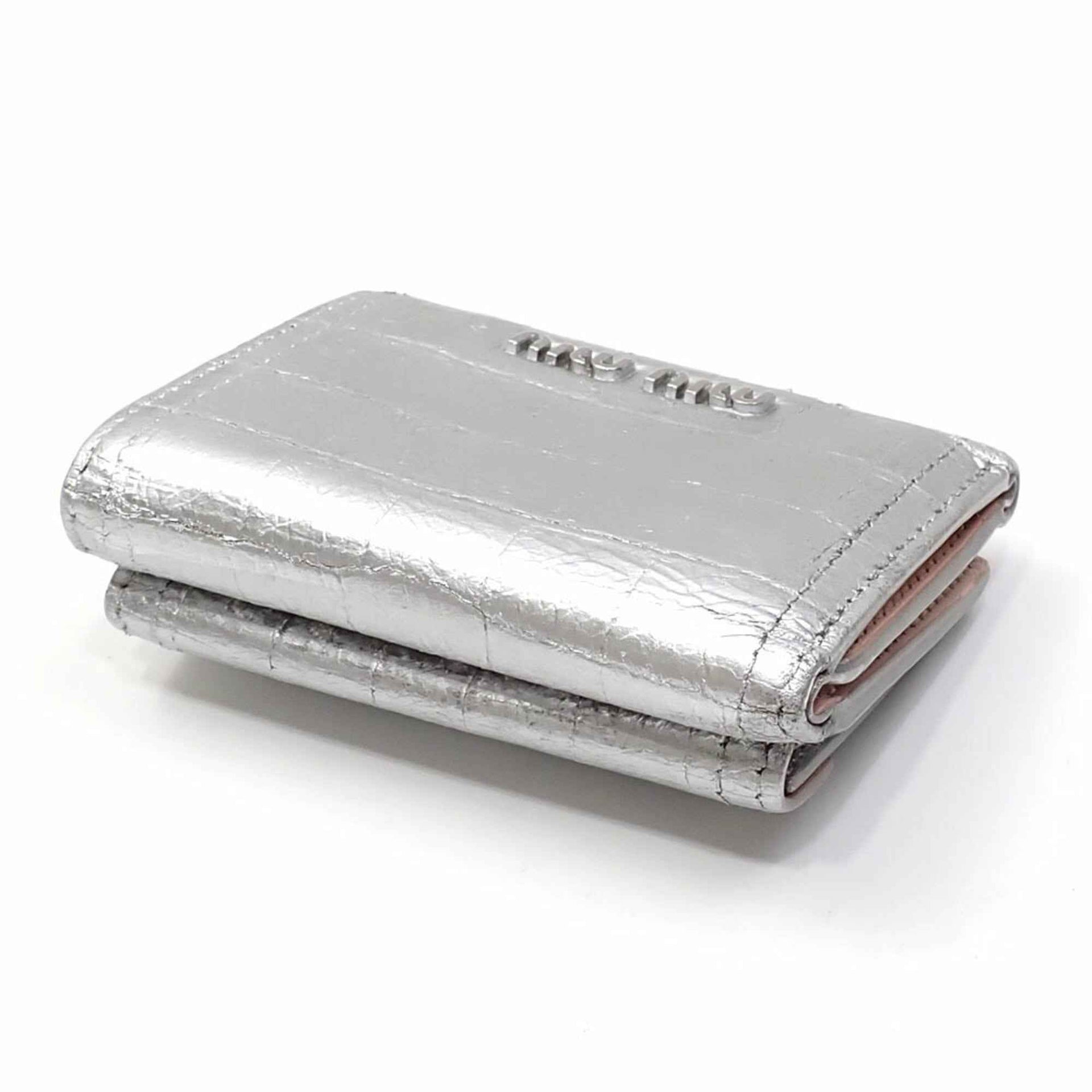 Miu Miu Miu Women\'s Tri-fold Wallet in Silver and Pink Leather (5MH021)