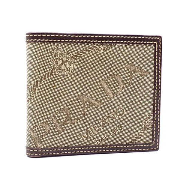 Prada Jacquard Compact Bifold Wallet for Men, Beige and Brown Canvas Leather, 2M0738 A221560
