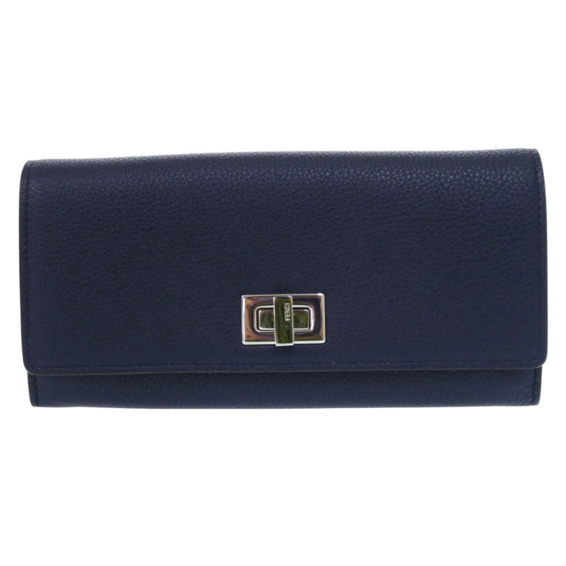 Unused Fendi Peekaboo Continental Wallet 8M0427 Calfskin Navy Bifold 1909 FENDI