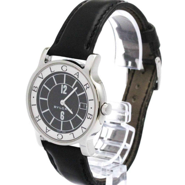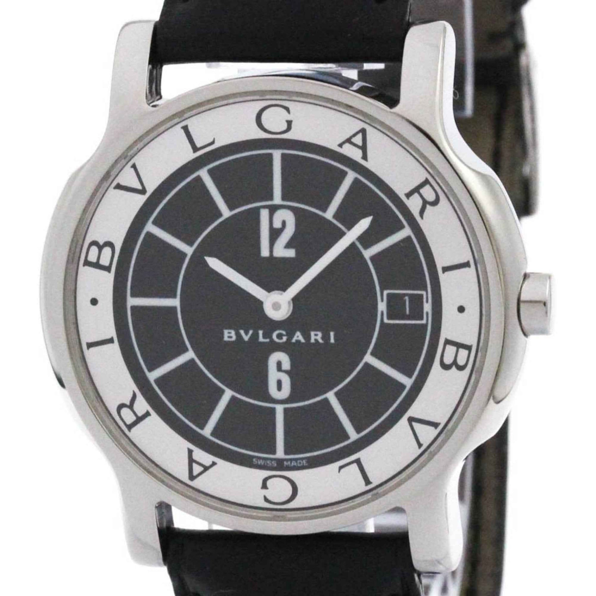 BVLGARI Solotempo Steel Leather Quartz Mens Watch ST35S Polished