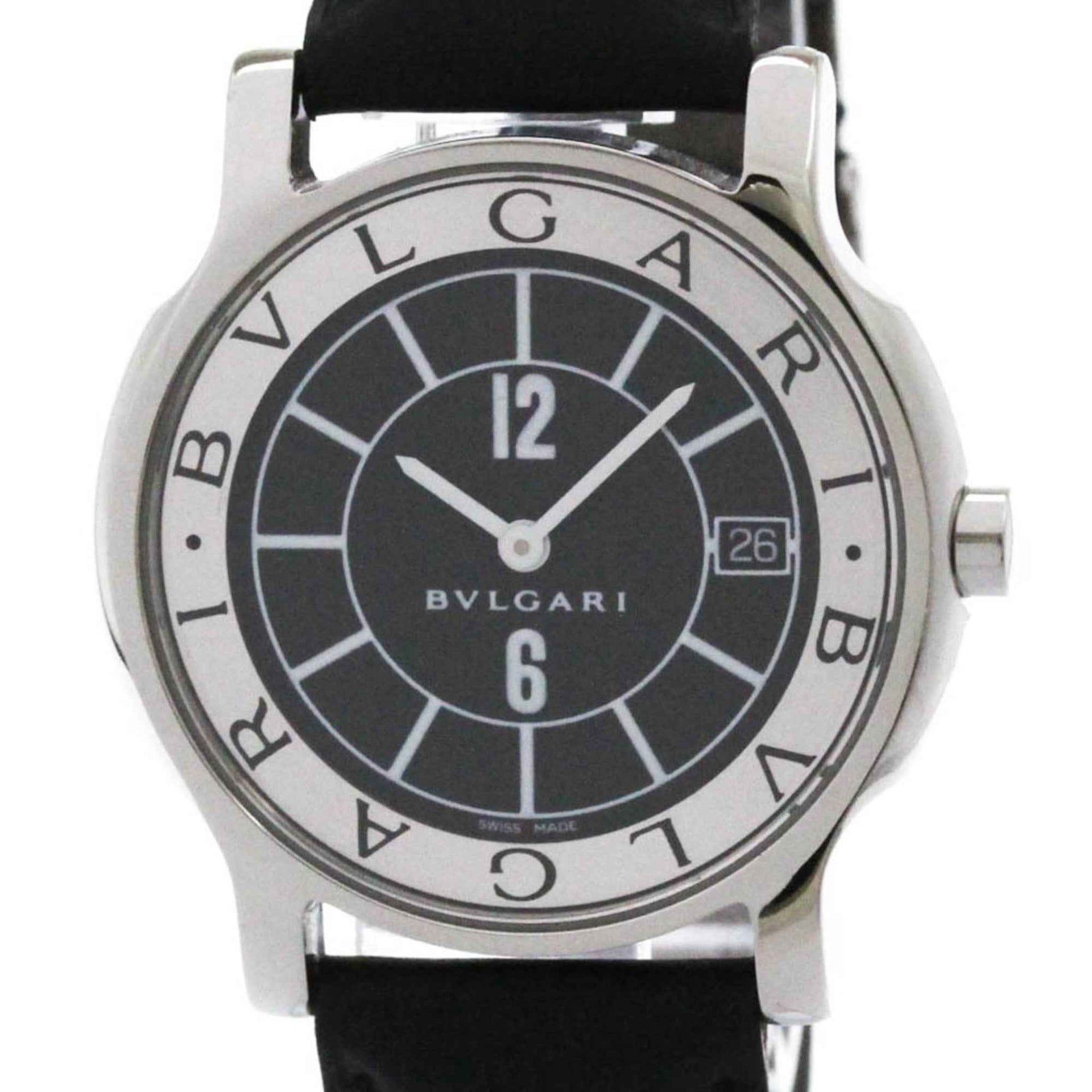 BVLGARI Solotempo Steel Leather Quartz Mens Watch ST35S Polished