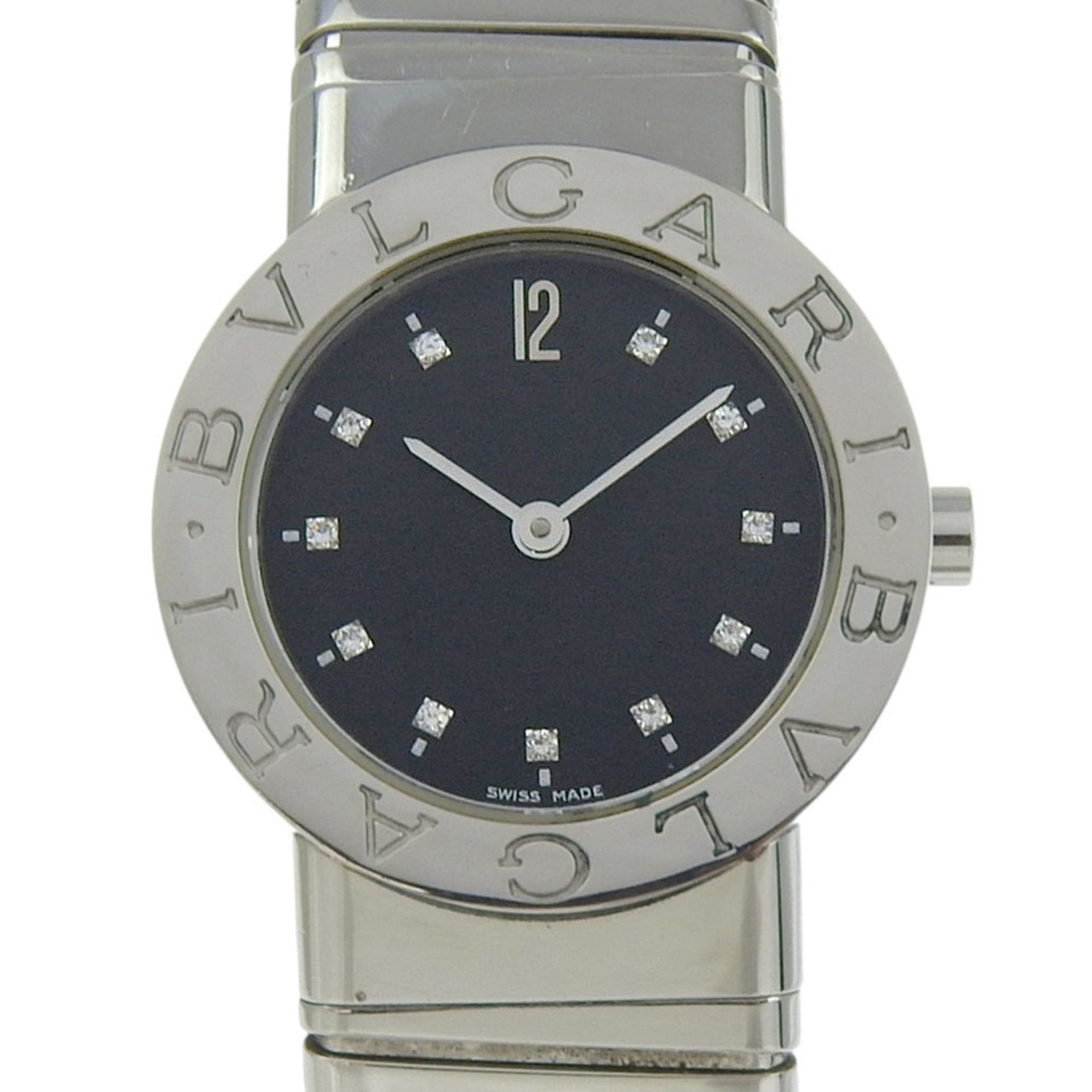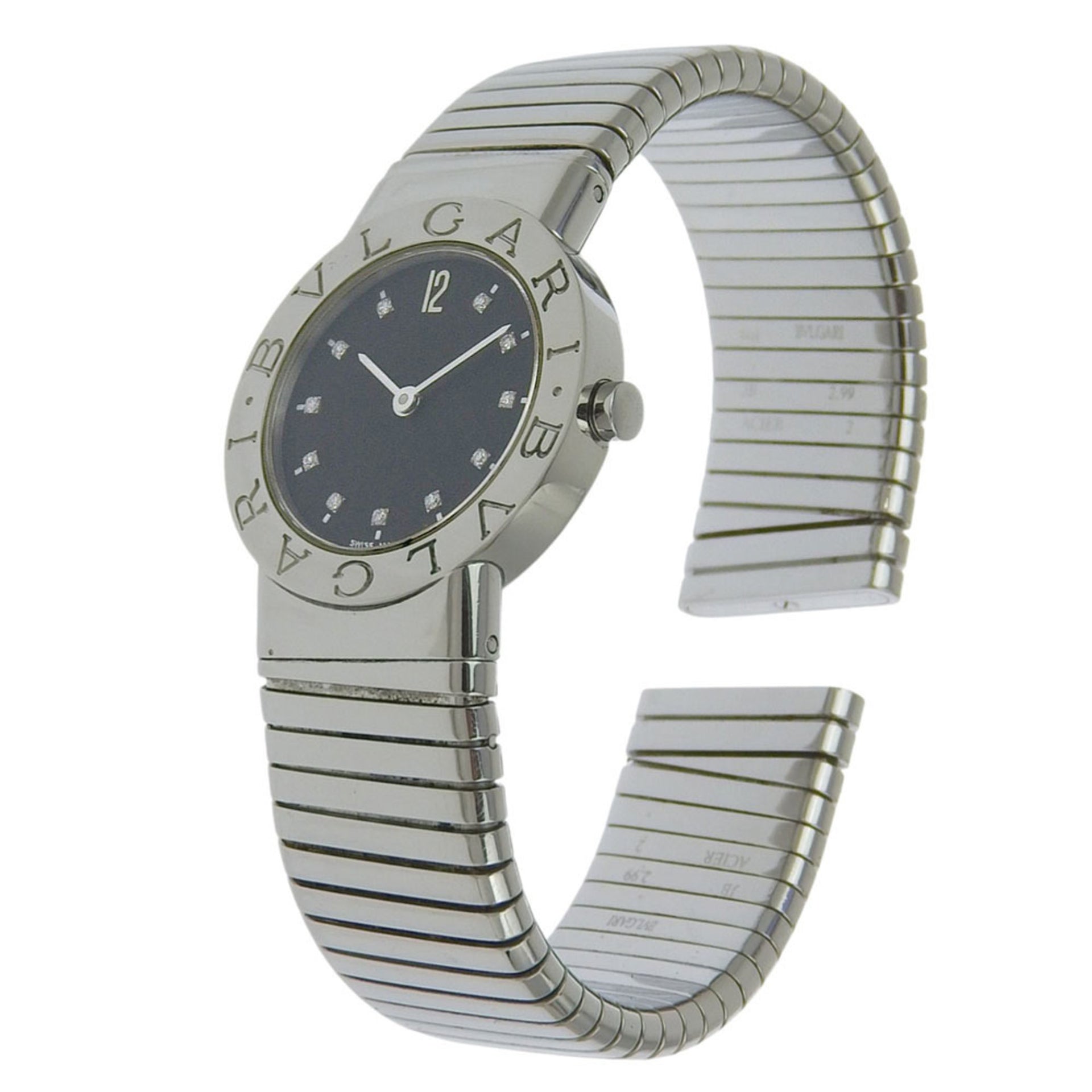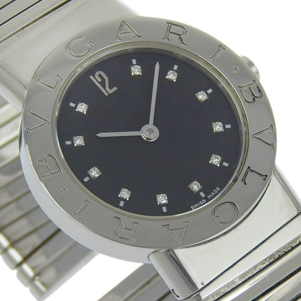 BVLGARI Tubogas Watch with 11 Diamonds, BB262TS, Stainless Steel, Quartz Movement, Analog Display, Black Dial, Women\'s