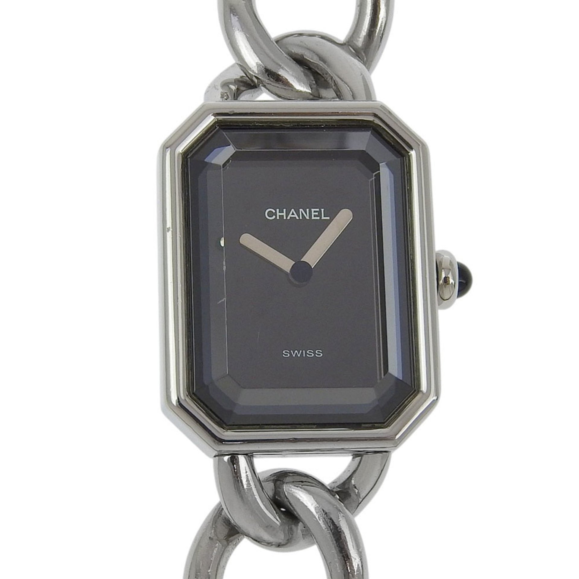 CHANEL Premiere M Watch H0452 Stainless Steel Quartz Analog Display Black Dial Women\'s