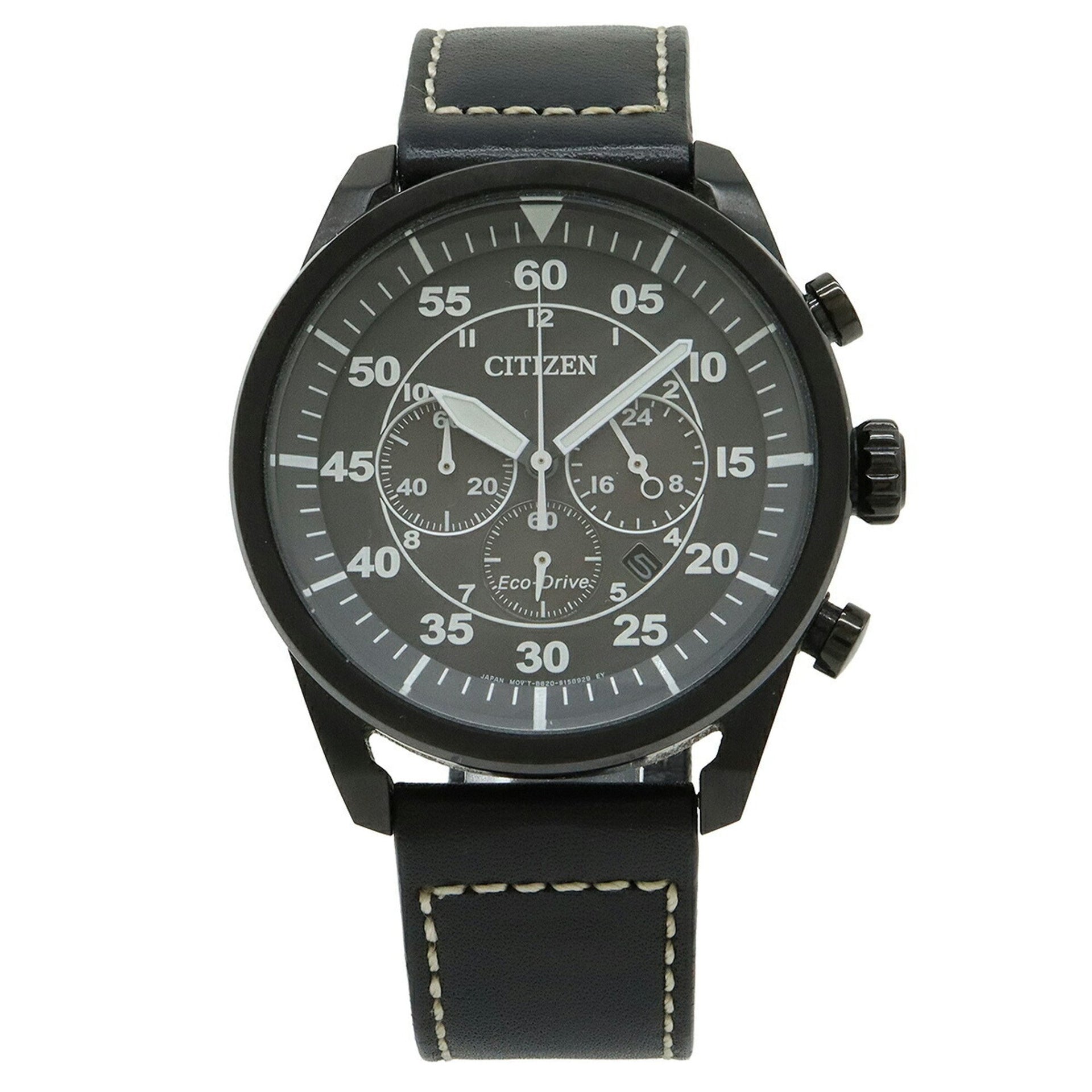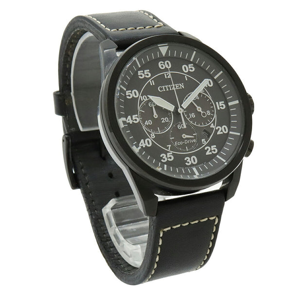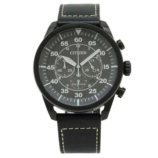 CITIZEN Eco-Drive Avion Radio-Controlled Solar Watch with Black Dial, Stainless Steel and Leather Strap, Men\'s C215-21H