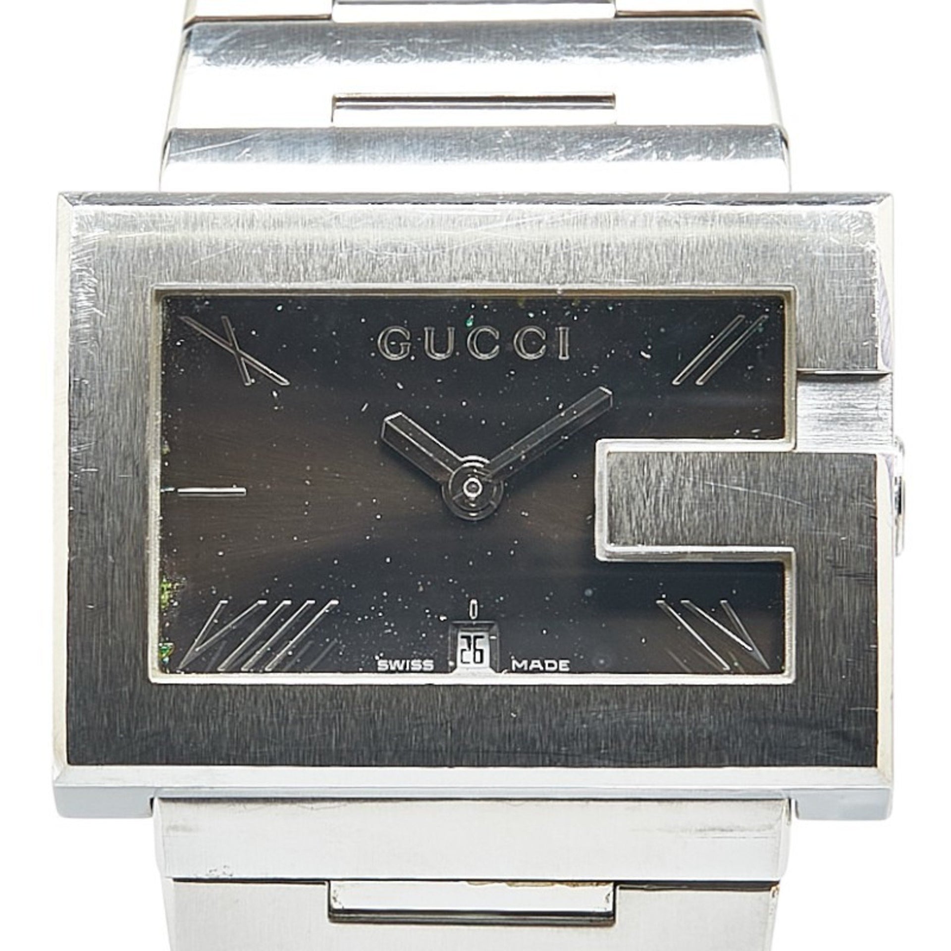 Gucci Men\'s 100M Quartz Watch with Black Dial and Stainless Steel Movement
