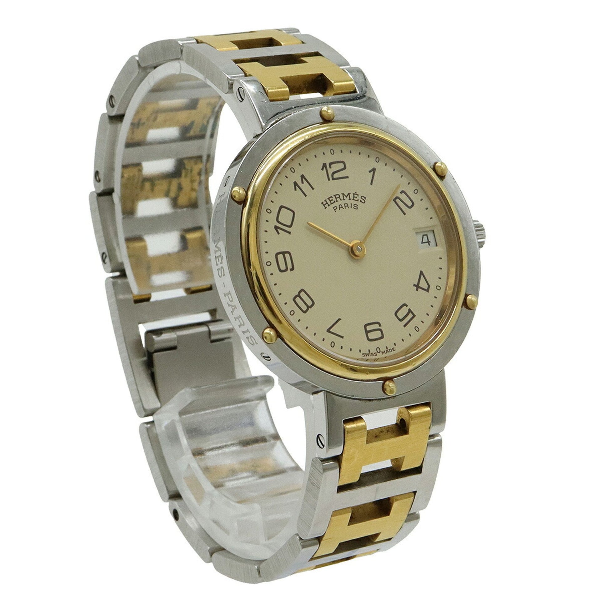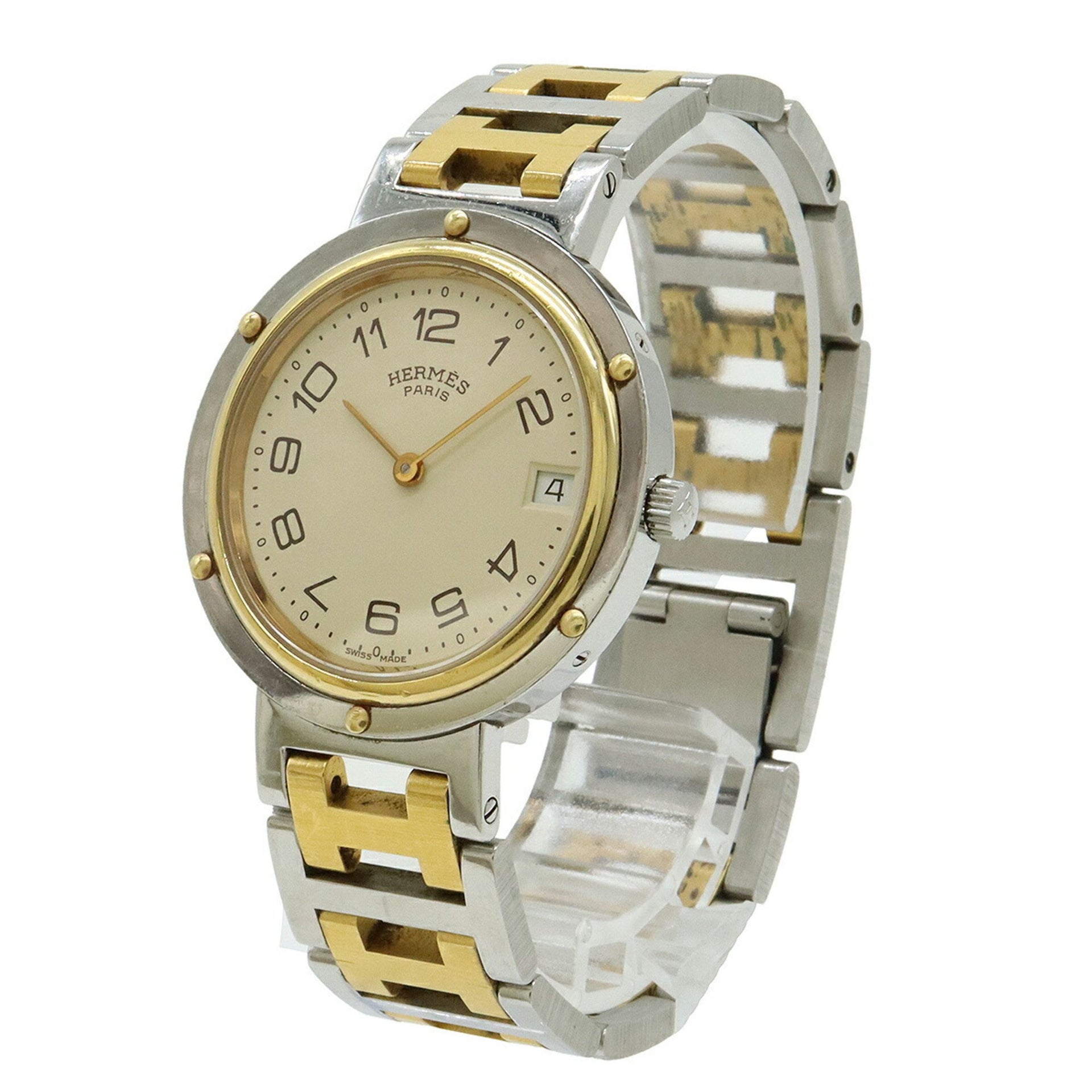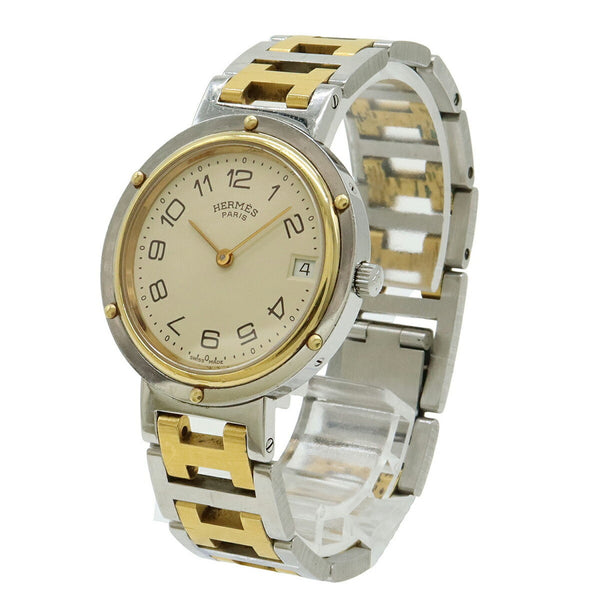 HERMES Clipper Ivory Dial Stainless Steel GP Two-Tone Men\'s Quartz Watch