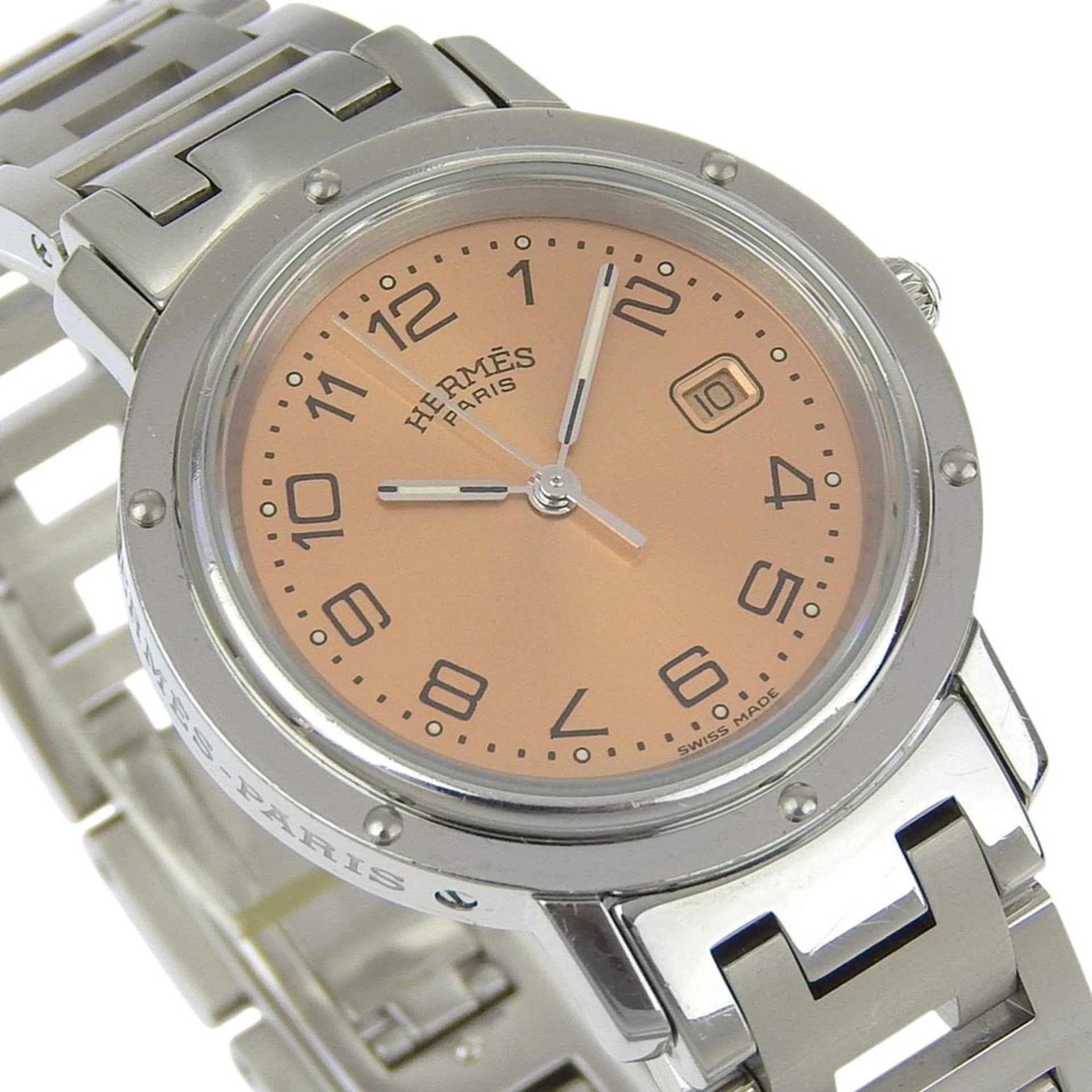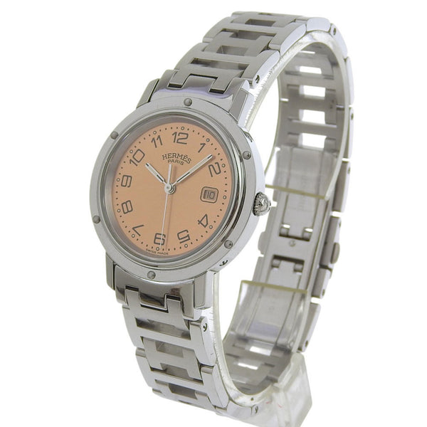 Hermès Clipper Watch CL4.410, Stainless Steel Quartz Analog Display, Pink Dial, Boys
