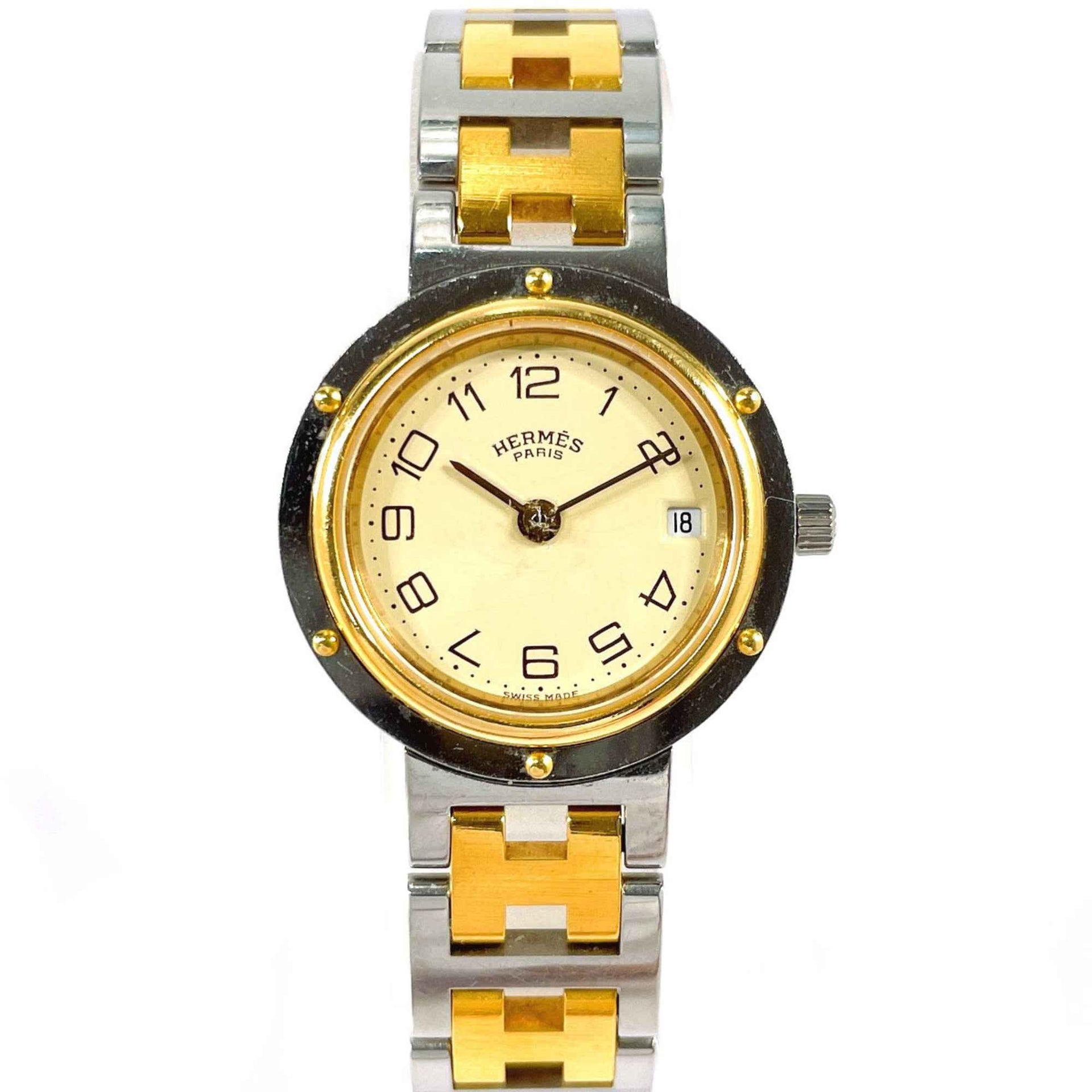 HERMES Clipper Watch, Stainless Steel/GP Silver, Silver Quartz, Cream Dial, Women\'s