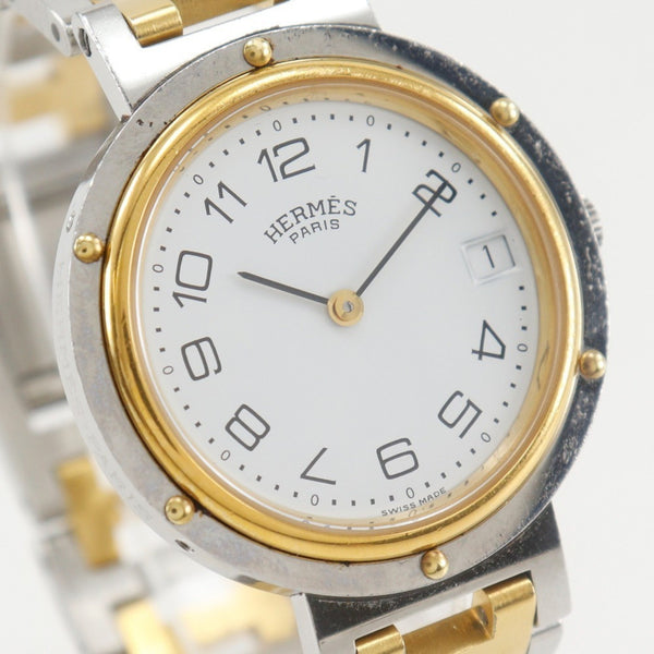 Hermès Clipper Watch, Stainless Steel with Gold Plated Quartz Movement, Analog Display, White Dial, Unisex