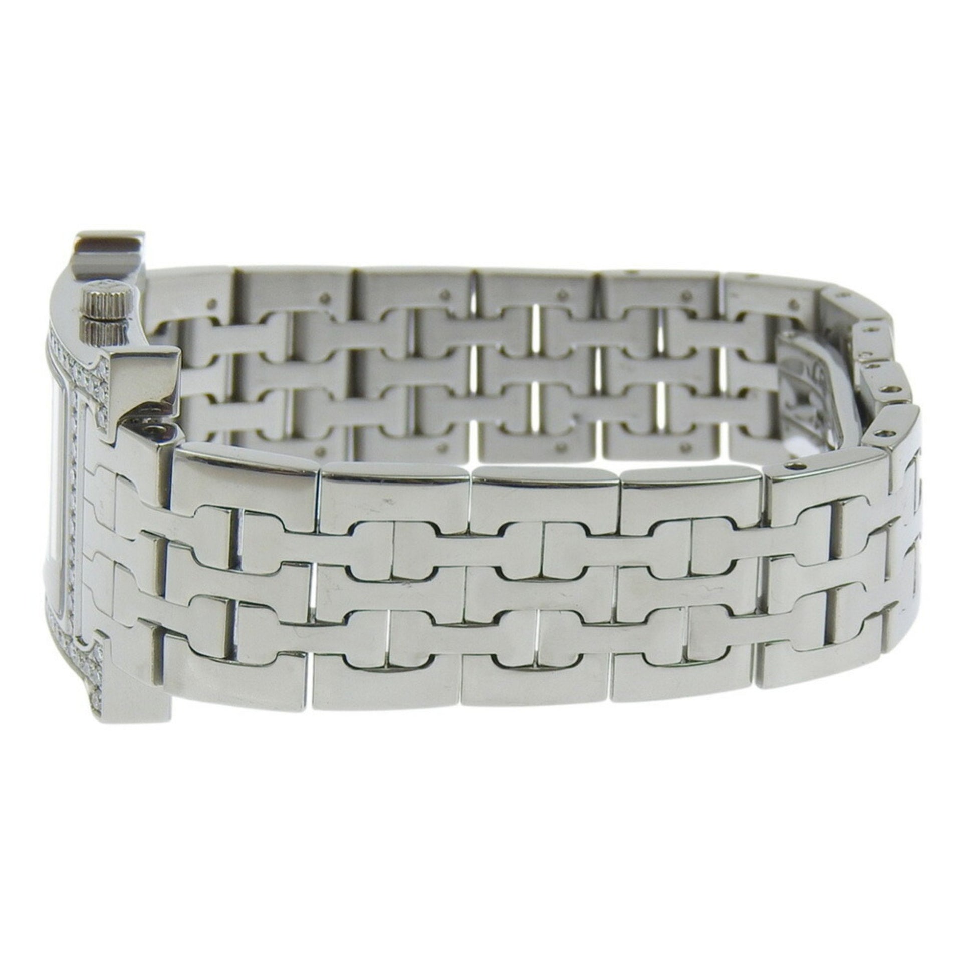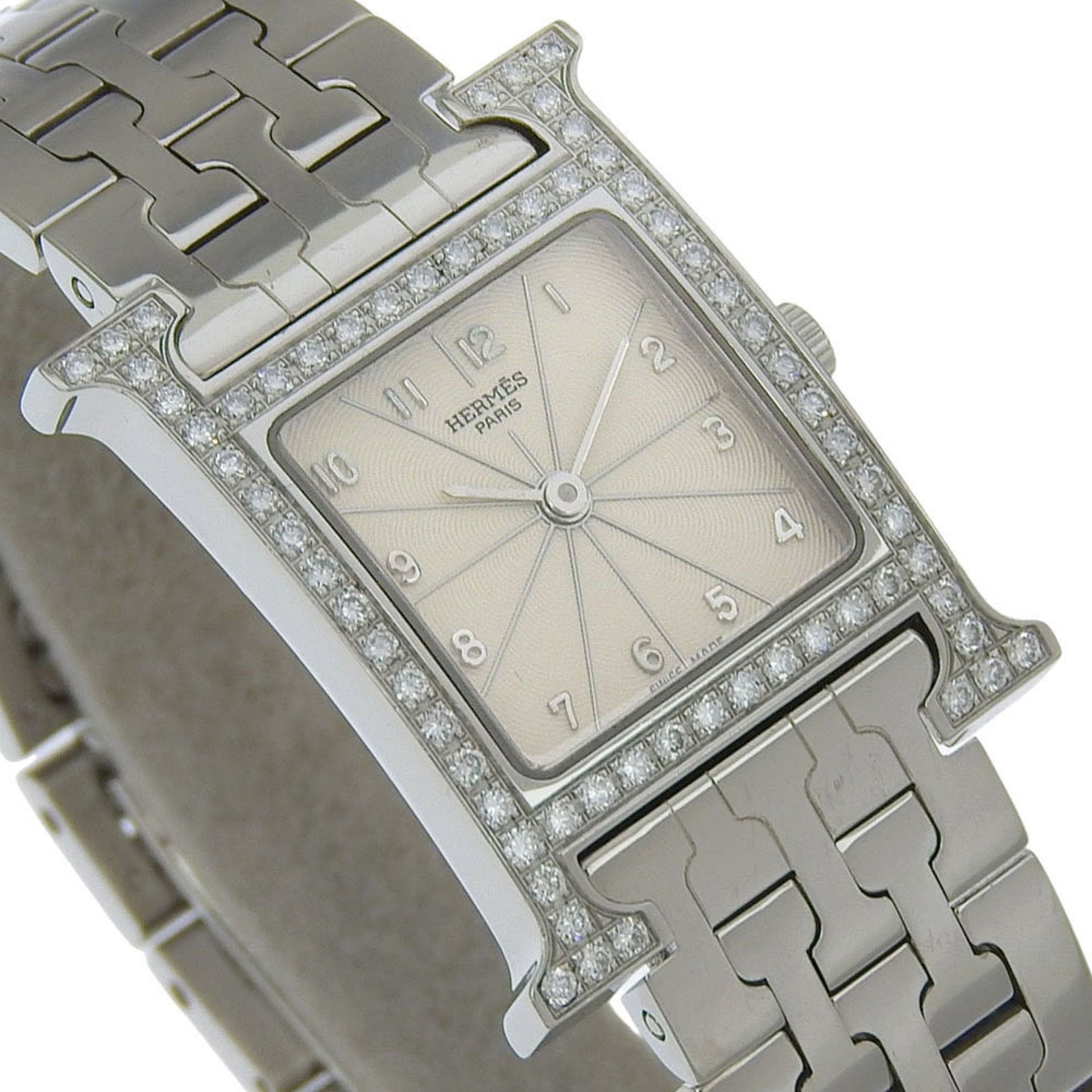 Hermès H Watch HH1.230, Diamond Bezel, Stainless Steel, Quartz Movement, Analog Display, White Dial, Women\'s