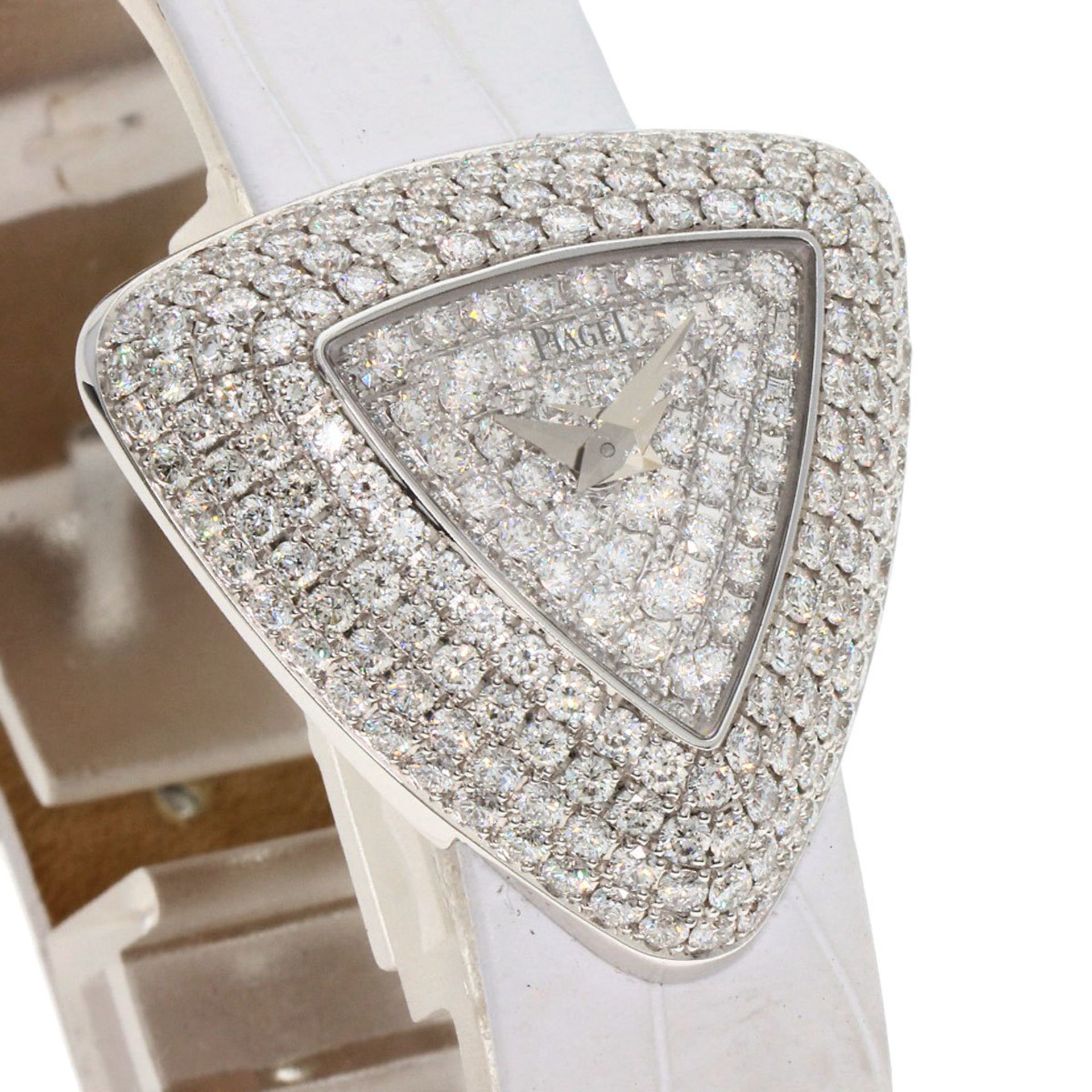 Piaget P10318 Limelight Triangle Full Diamond Watch 18K White Gold Leather Women\'s PIAGET
