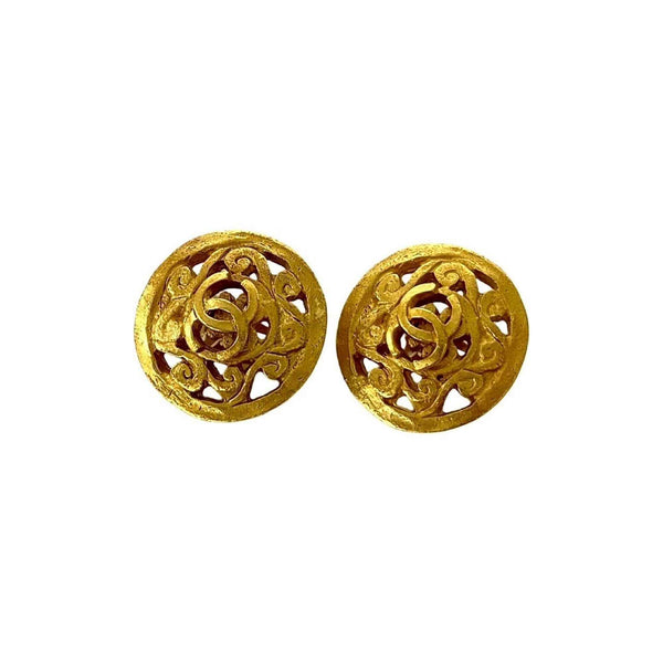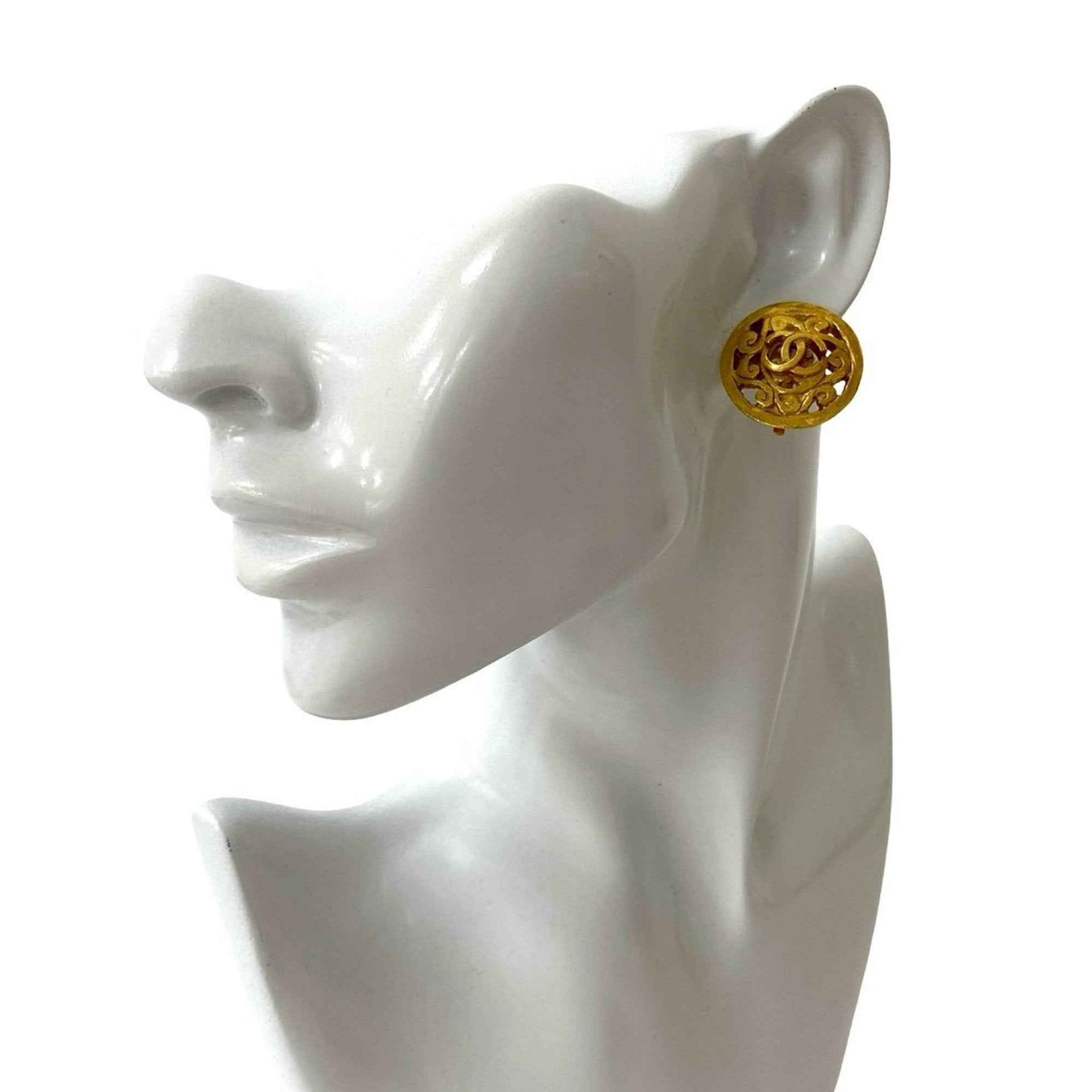 95A CHANEL Vintage Coco Mark Motif Earrings and Ear Cuffs, Gold, 18749