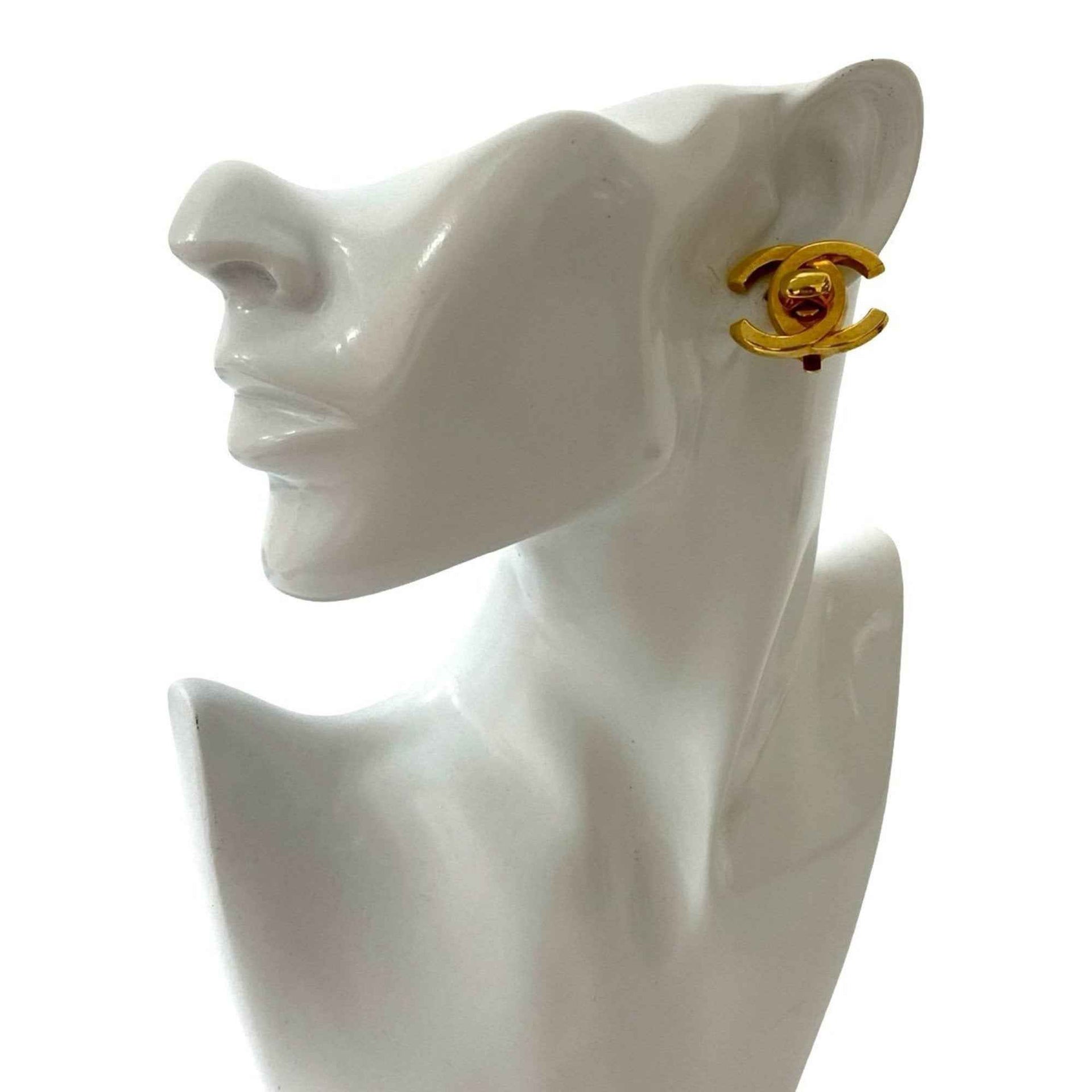 96P CHANEL Vintage Coco Mark Motif Earrings/Ear Cuff Gold 133-2
