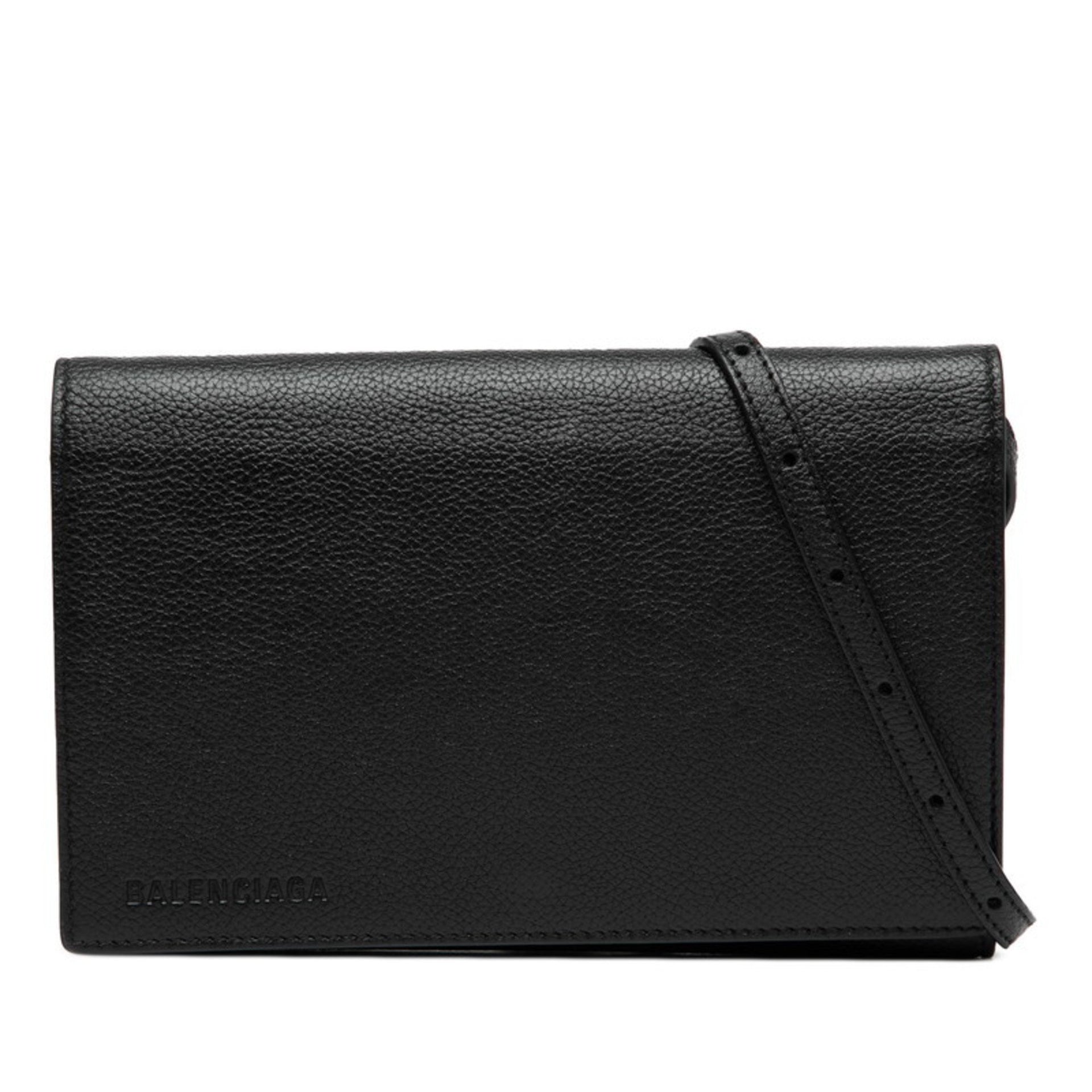 Balenciaga Logo Shoulder Bag 674892 Black Leather Women\'s BALENCIAGA