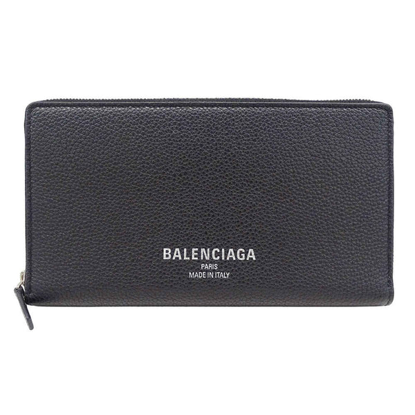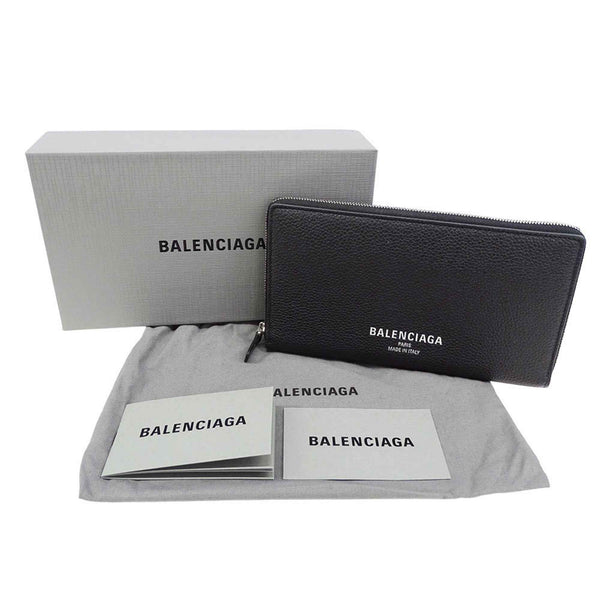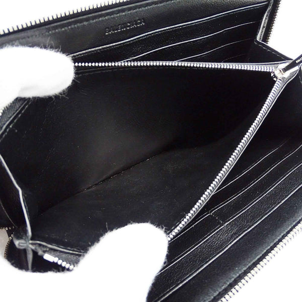 Balenciaga Men\'s Long Wallet in Black Leather with Round Zipper