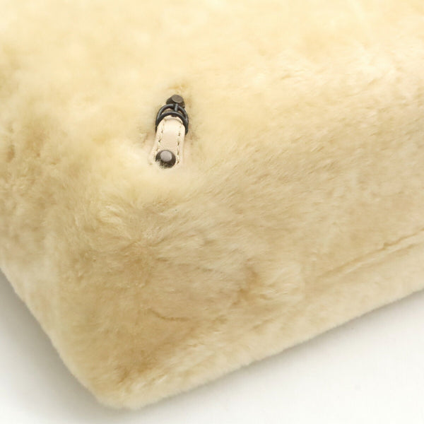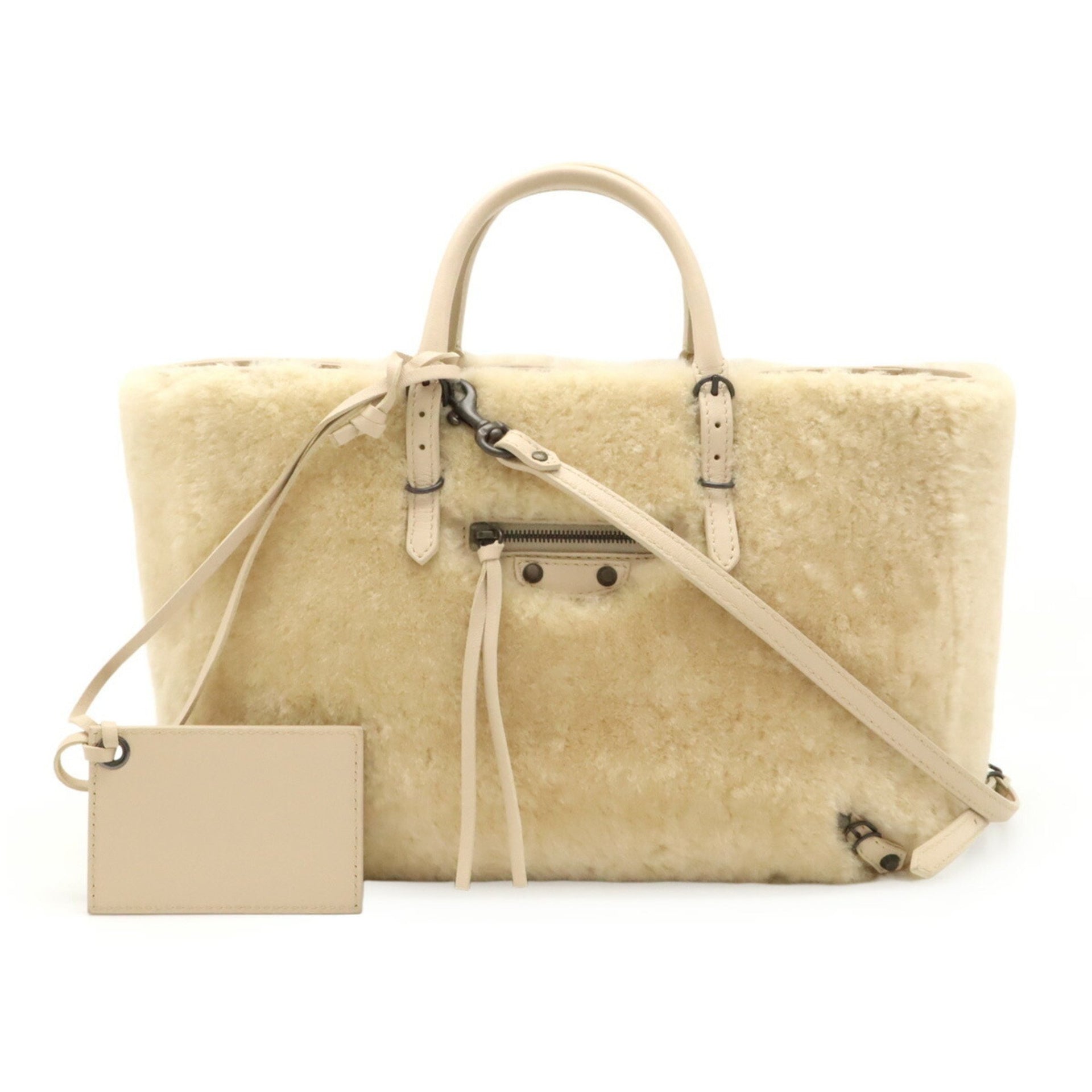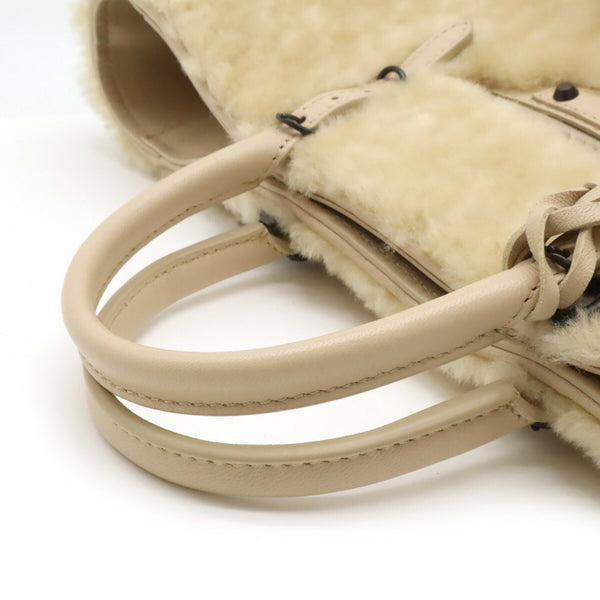 BALENCIAGA Paper Handbag Tote Bag Shoulder Fur Leather Pink Beige 410238