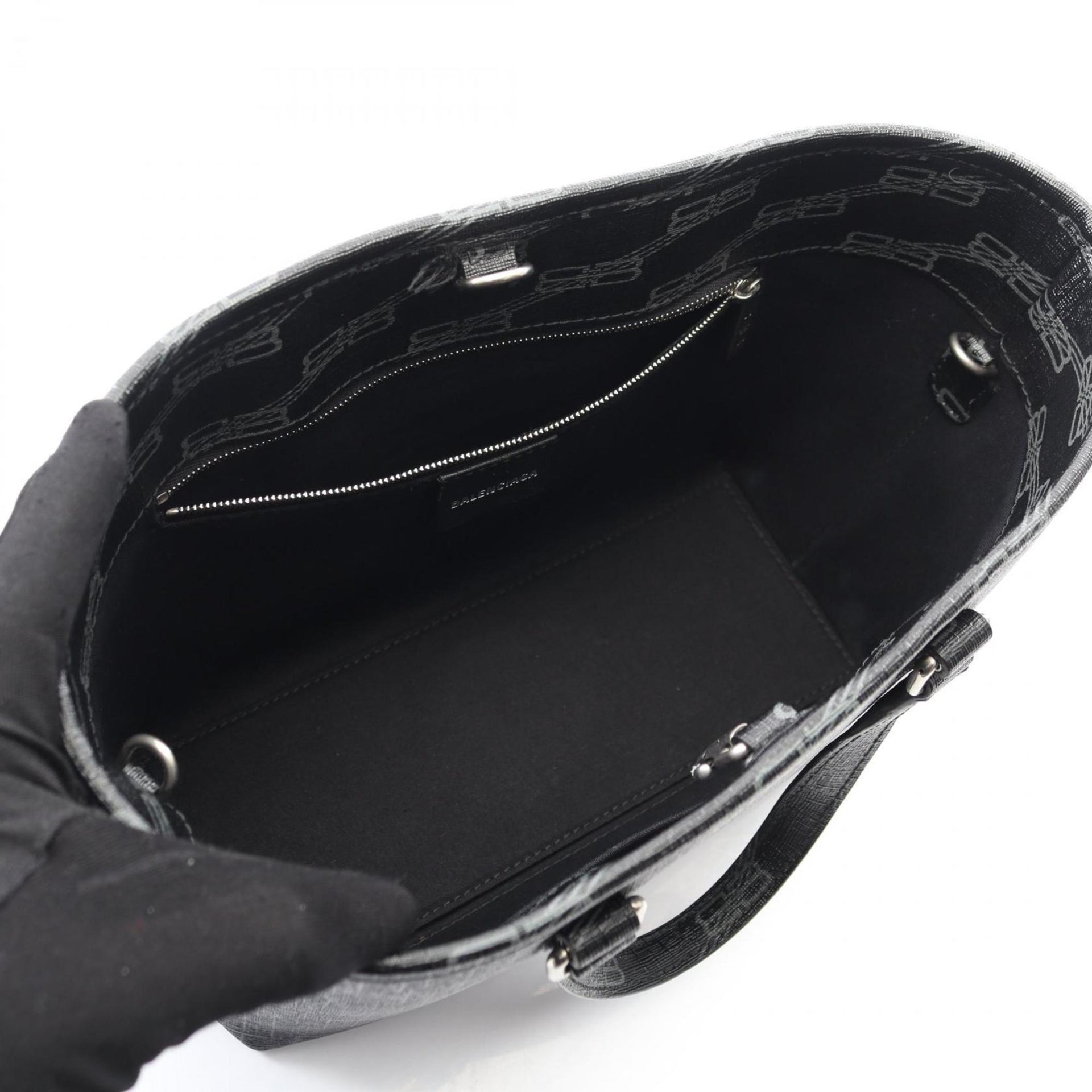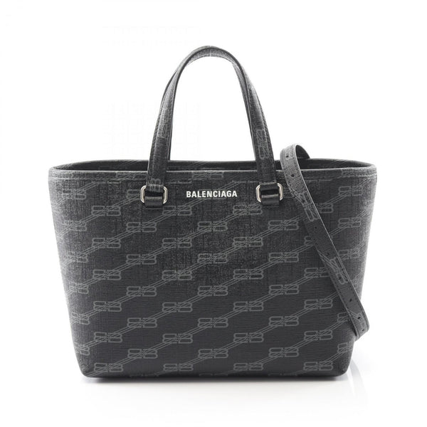Balenciaga Signature Small Shopper Handbag in Coated Canvas, Black, 702699