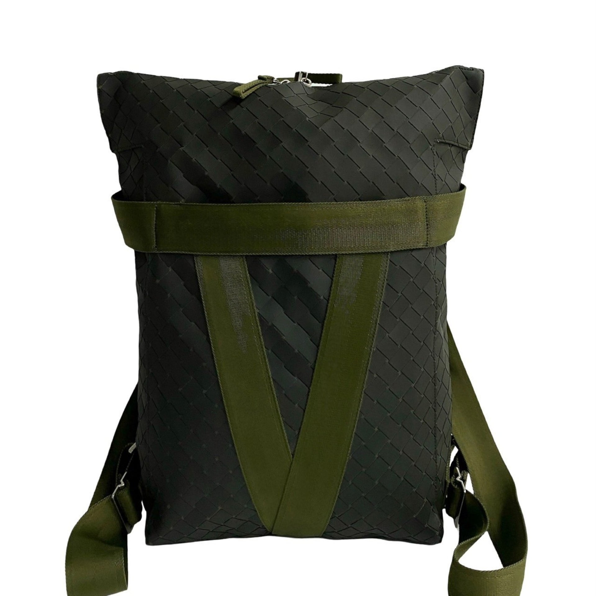 BOTTEGA VENETA New Rubber Intrecciato Nylon Backpack, Khaki 47369
