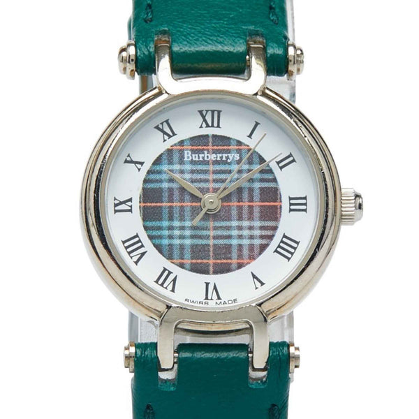 Burberry Check Leather (non-original) Quartz Watch with White Dial, Stainless Steel and Leather, Women\'s, BURBERRY