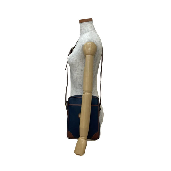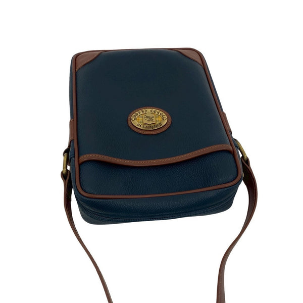Burberry\'s Nova Check Shadow Horse Logo Leather Shoulder Bag/Pochette in Navy and Brown (98431)