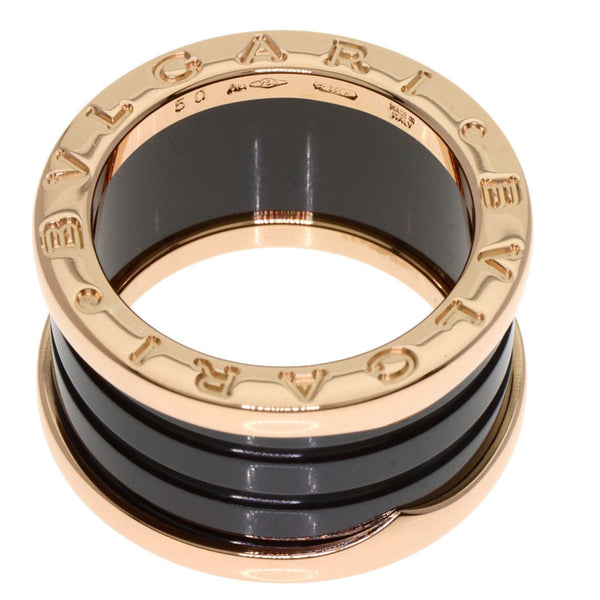 BVLGARI B-zero1 Black Ceramic 4-Band #50 Ring in 18K Pink Gold for Women