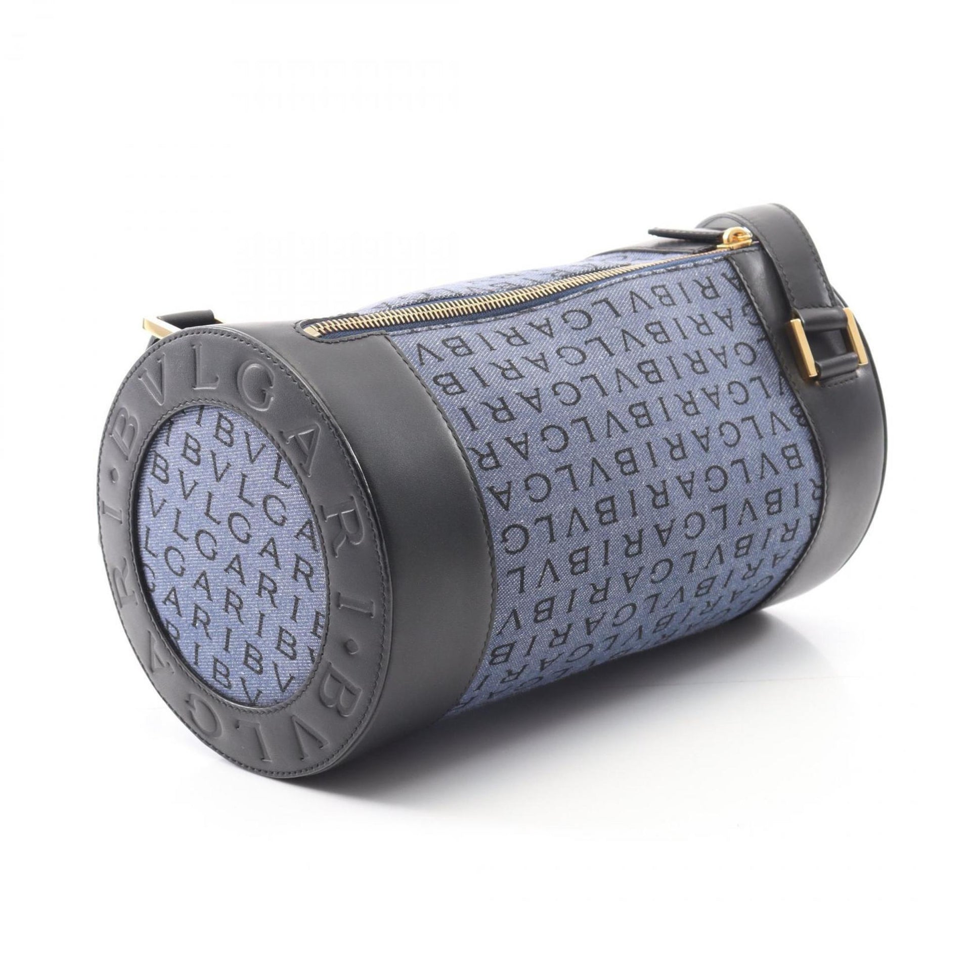 BVLGARI B-ZERO1 Logomania Shoulder Bag, Canvas and Leather, Women\'s, Blue Black