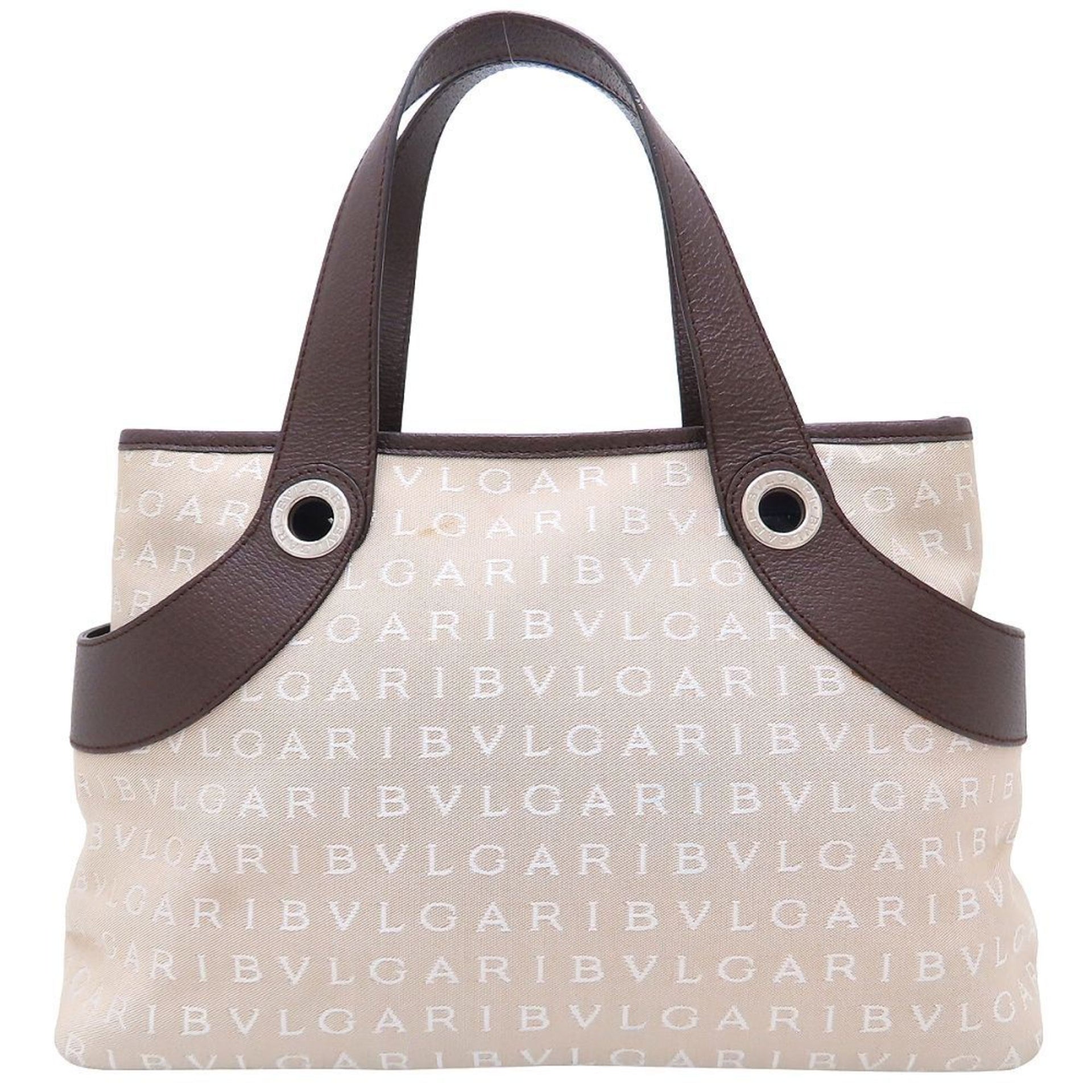 BVLGARI Bvlgari Mania Handbag, Canvas and Leather, Beige Brown, Women\'s, 352833