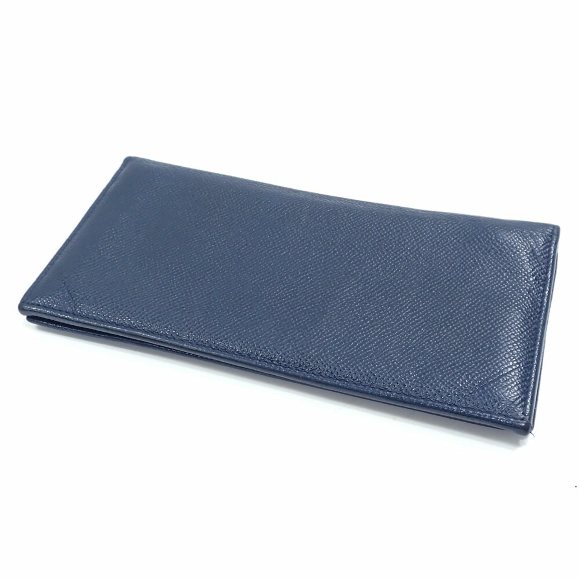 Bvlgari two-piece long wallet for men, navy blue leather.