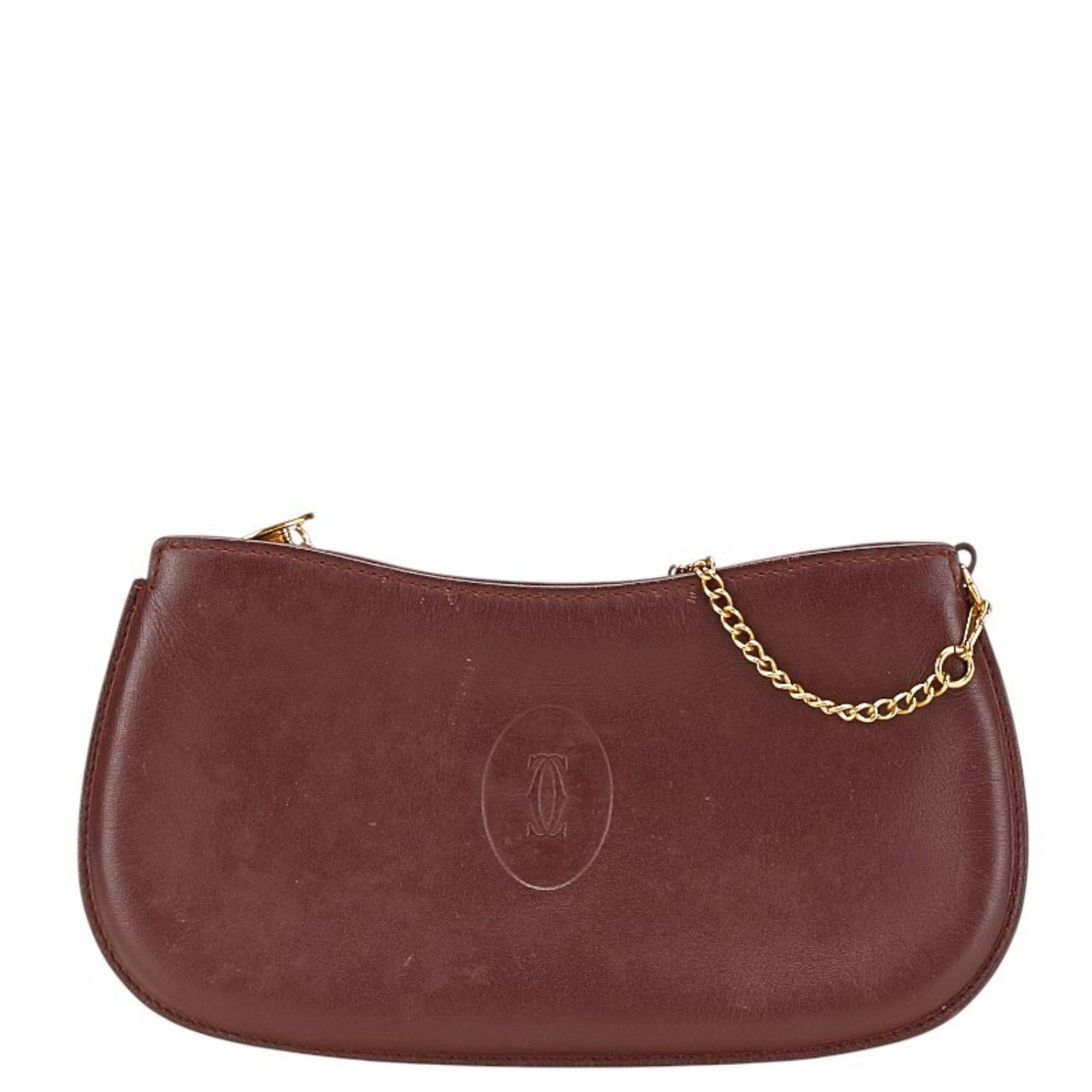 Cartier Must Line Accessory Pouch, Wine Red/Bordeaux Leather, Women\'s, CARTIER