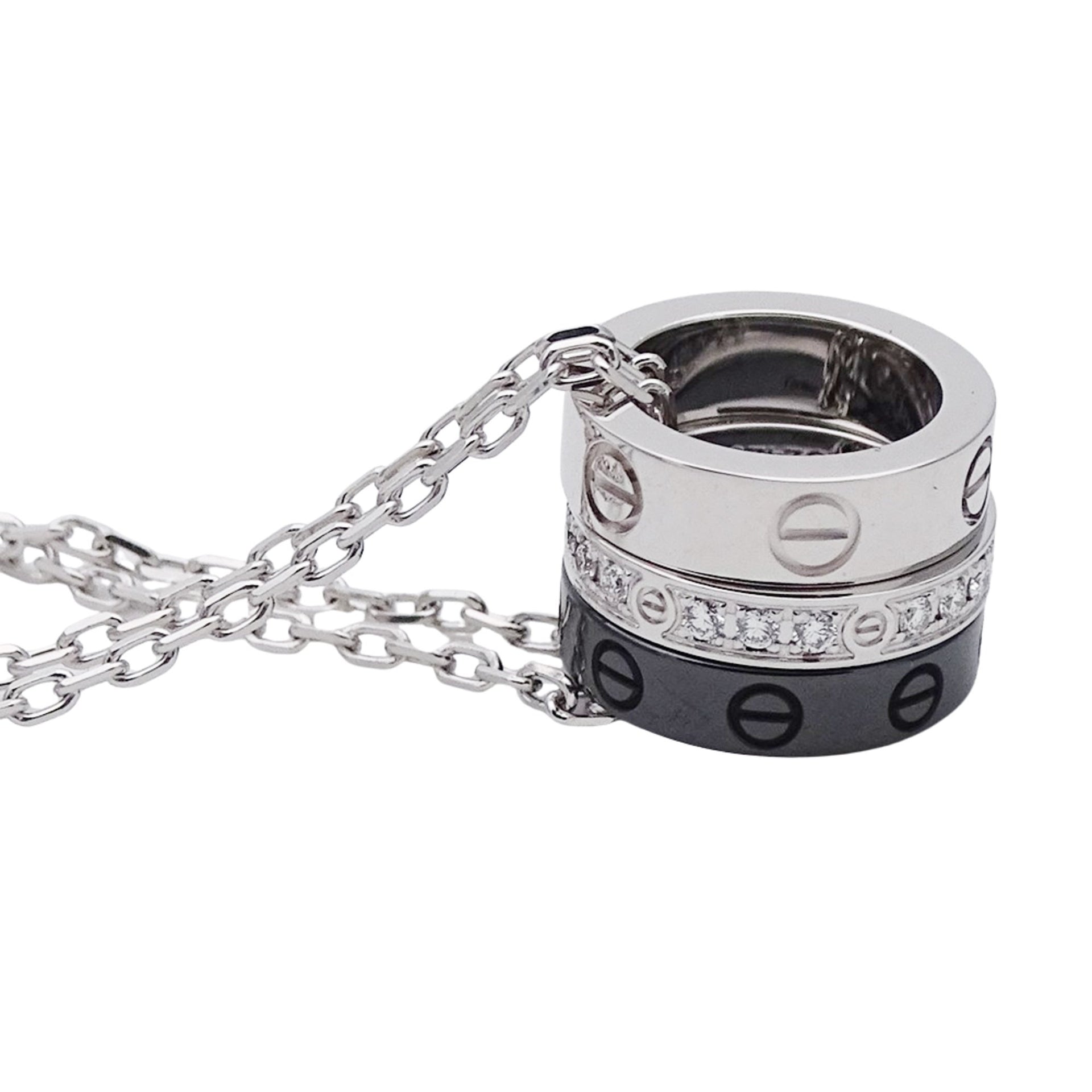 Cartier Women\'s Necklace, 750WG Ceramic Diamond Love Three-Hoop White Gold