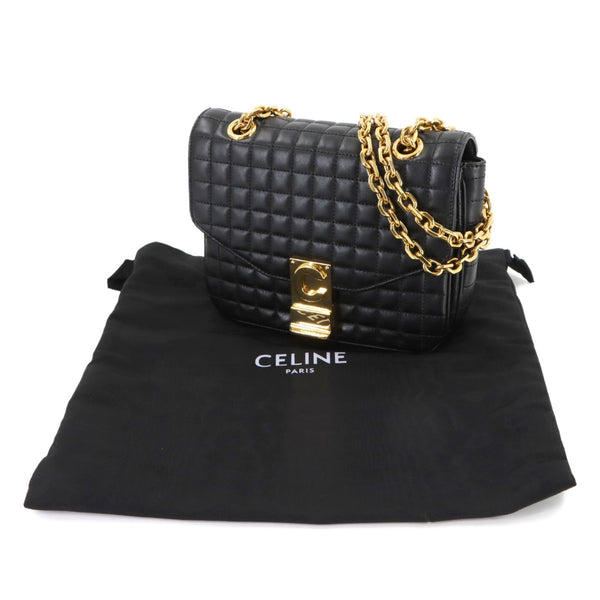 Celine C Small Chain Shoulder Bag in Black Quilted Leather with Gold Hardware (188403)