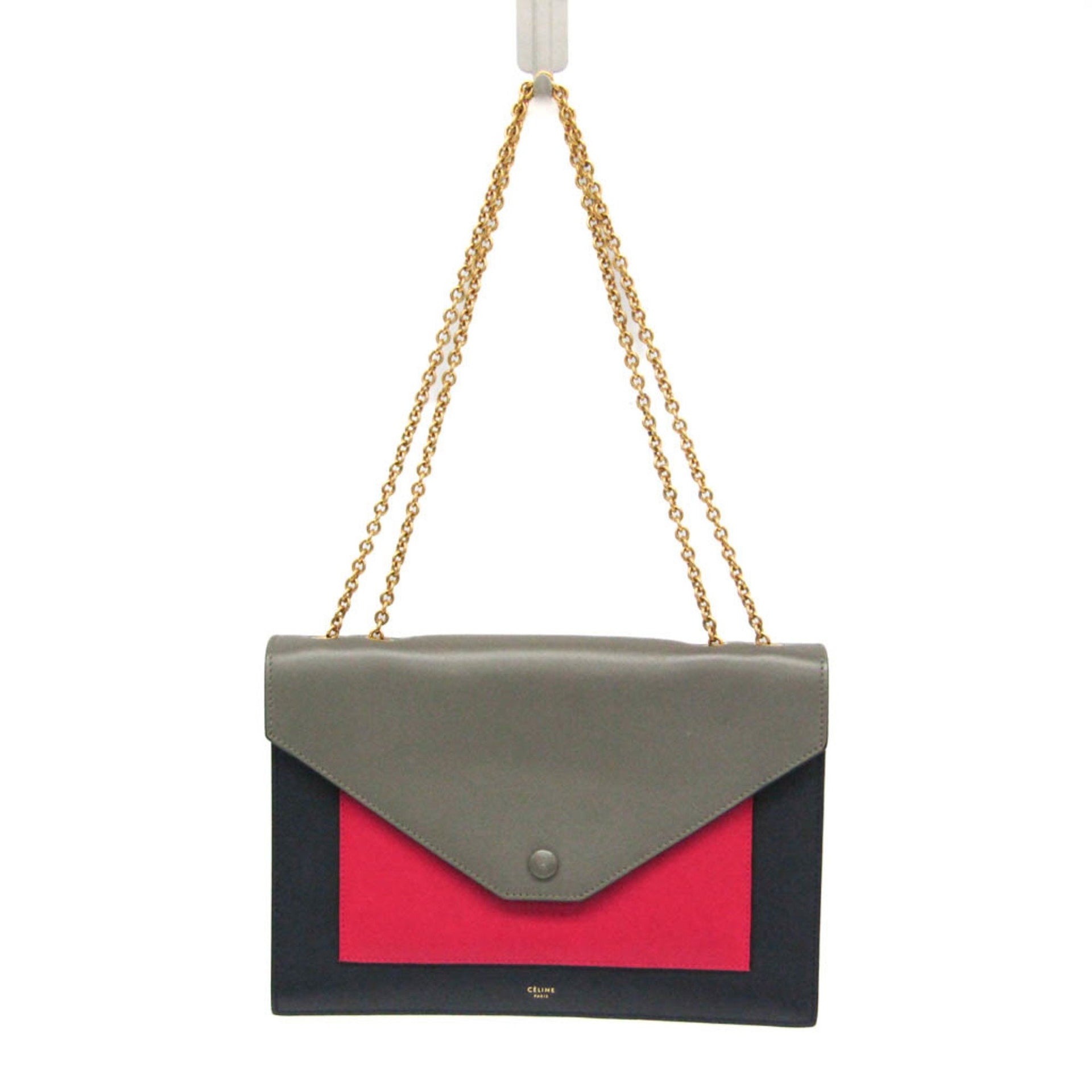Celine Chain Flap Bag 175383UNA.25FH Women\'s Leather Shoulder Bag Black,Gray,Red Color