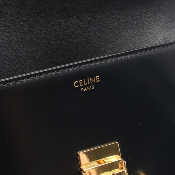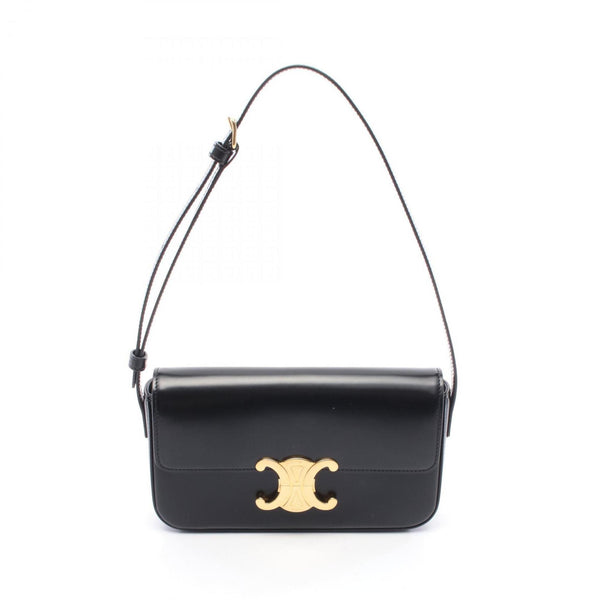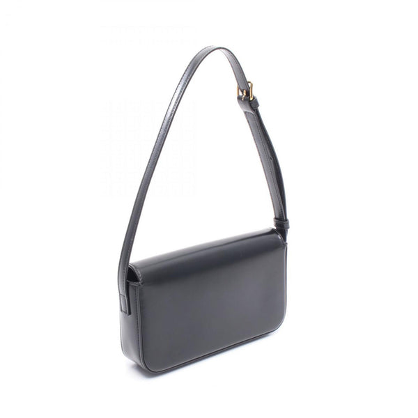 Celine Claude Triomphe Shoulder Bag, Leather, Women's, Black, 194143