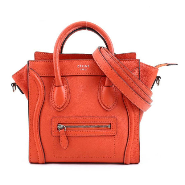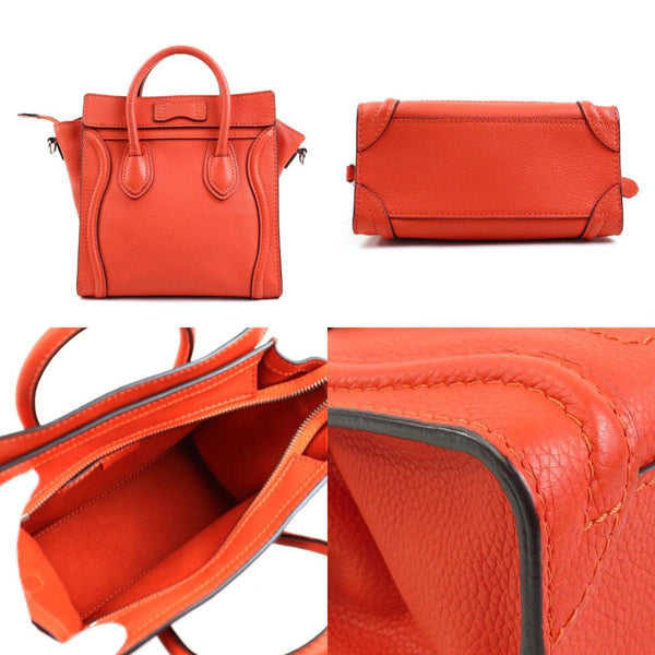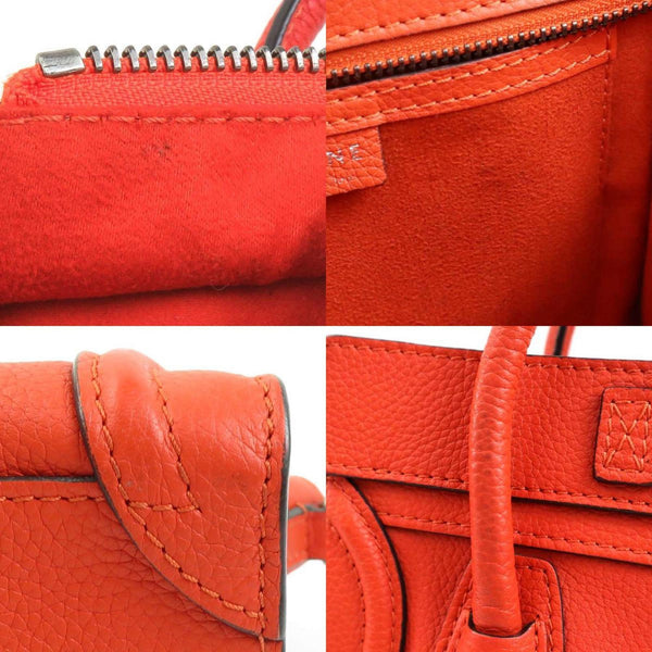 CELINE Handbag Shoulder Bag Luggage Nano Shopper Leather Orange Women\'s r10299i