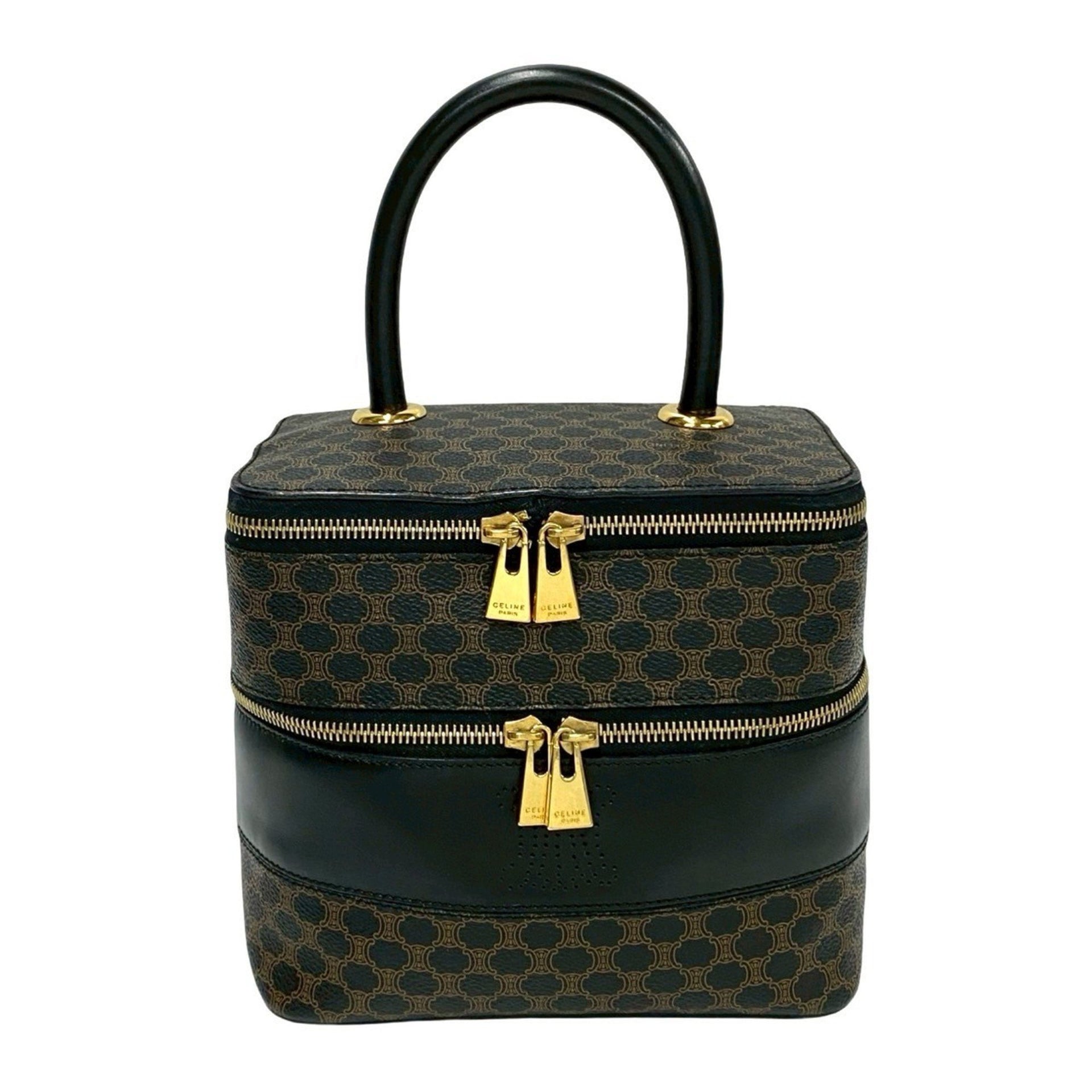 CELINE Macadam Blason Triomphe Leather Handbag Vanity Bag Black 46134
