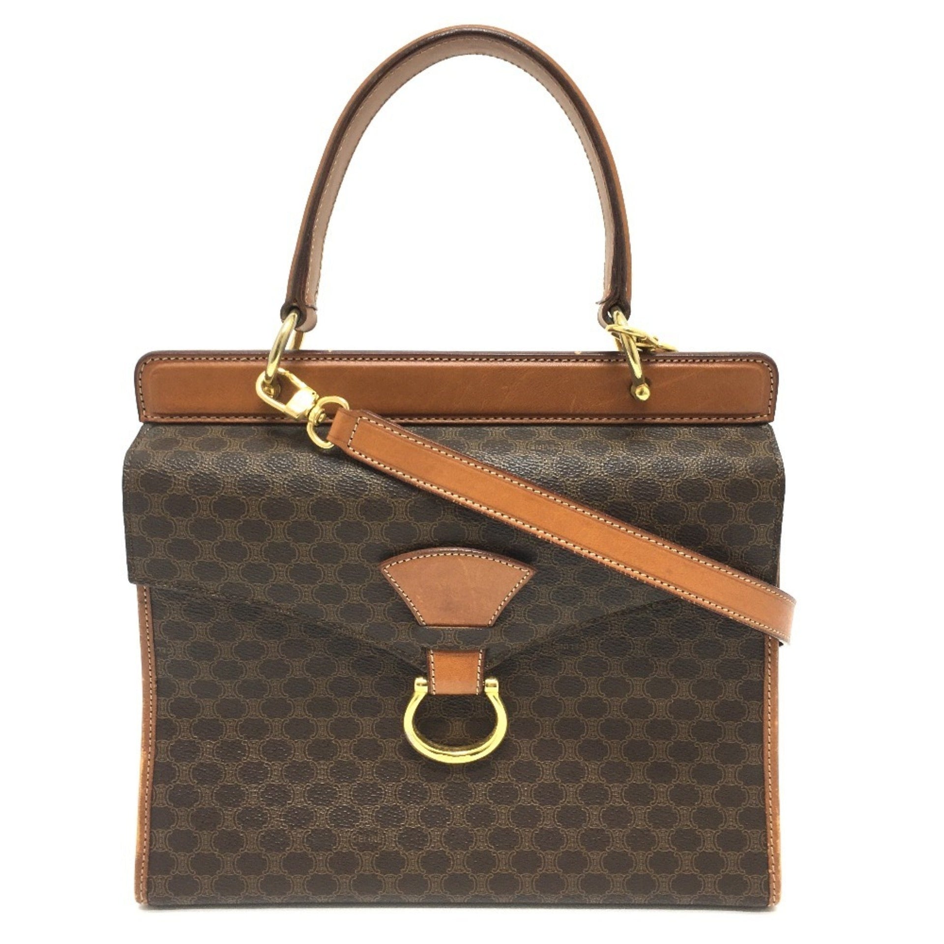 CELINE Macadam One-Handle 2-Way Handbag/Shoulder Bag in PVC/Leather, Brown