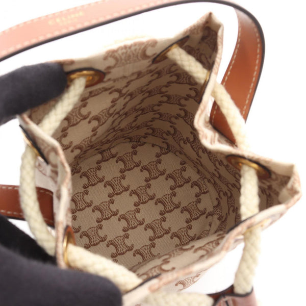 Celine Teen Drawstring Triomphe Handbag in Canvas and Leather, Ivory Brown, 19653FRI