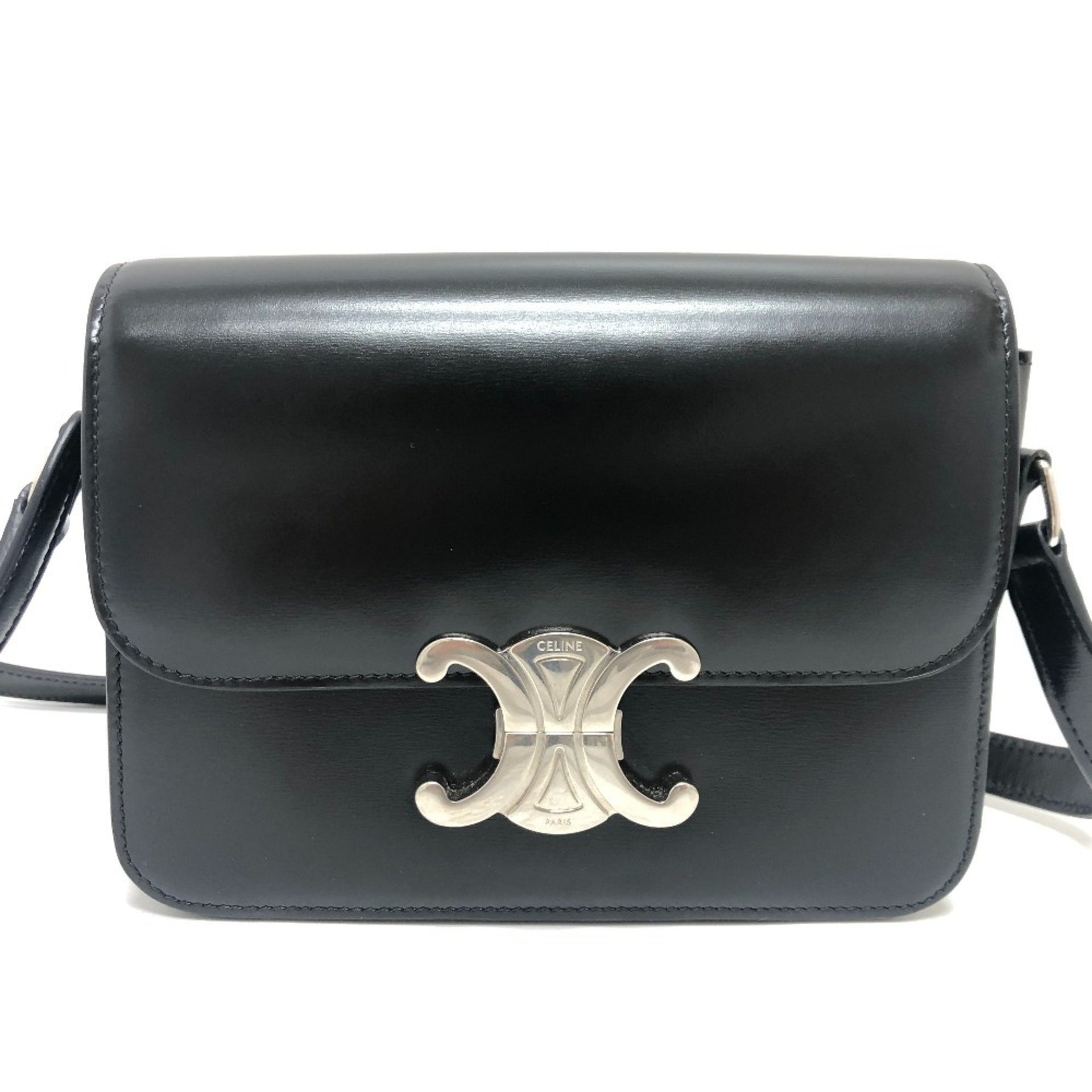 CELINE Triomphe Classic Shoulder Bag Leather Women\'s Silver Hardware Black