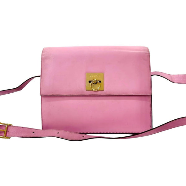 CELINE Vintage Logo Ring Hardware Leather Shoulder Bag Pochette Sacoche Pink 26147