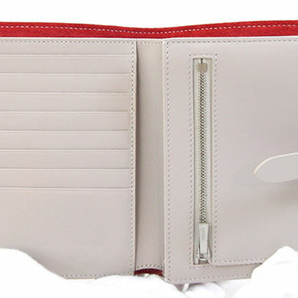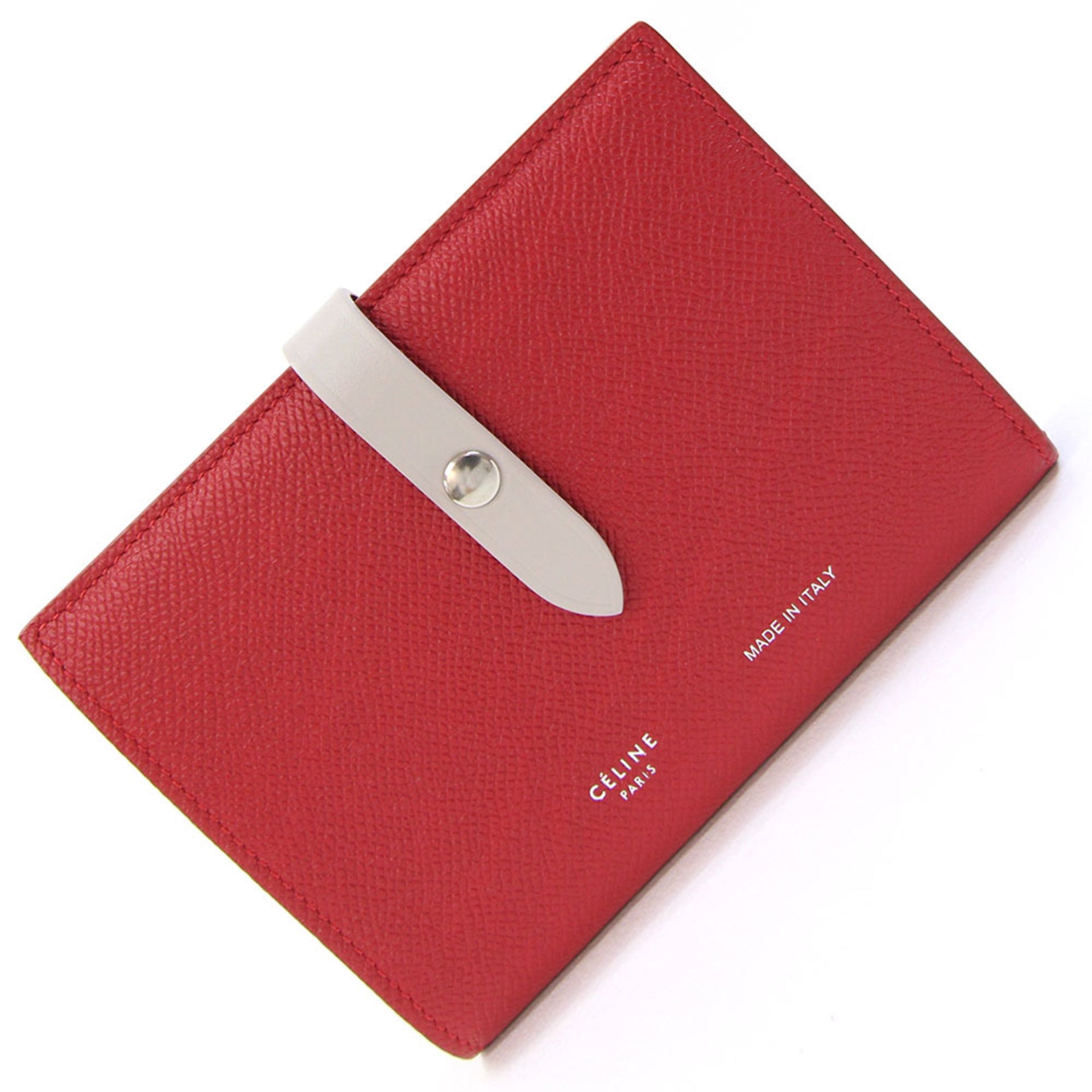 Celine Women\'s Multi-Function Bi-Fold Wallet with Strap, Medium, 104813, Red and Light Gray Leather, Two-Tone Design