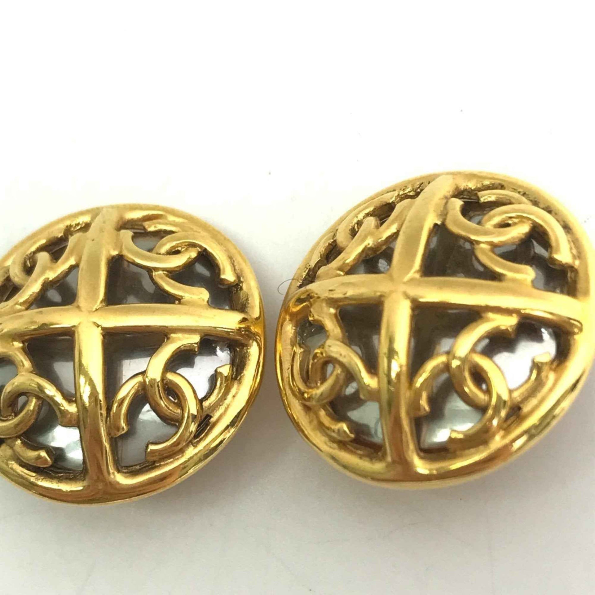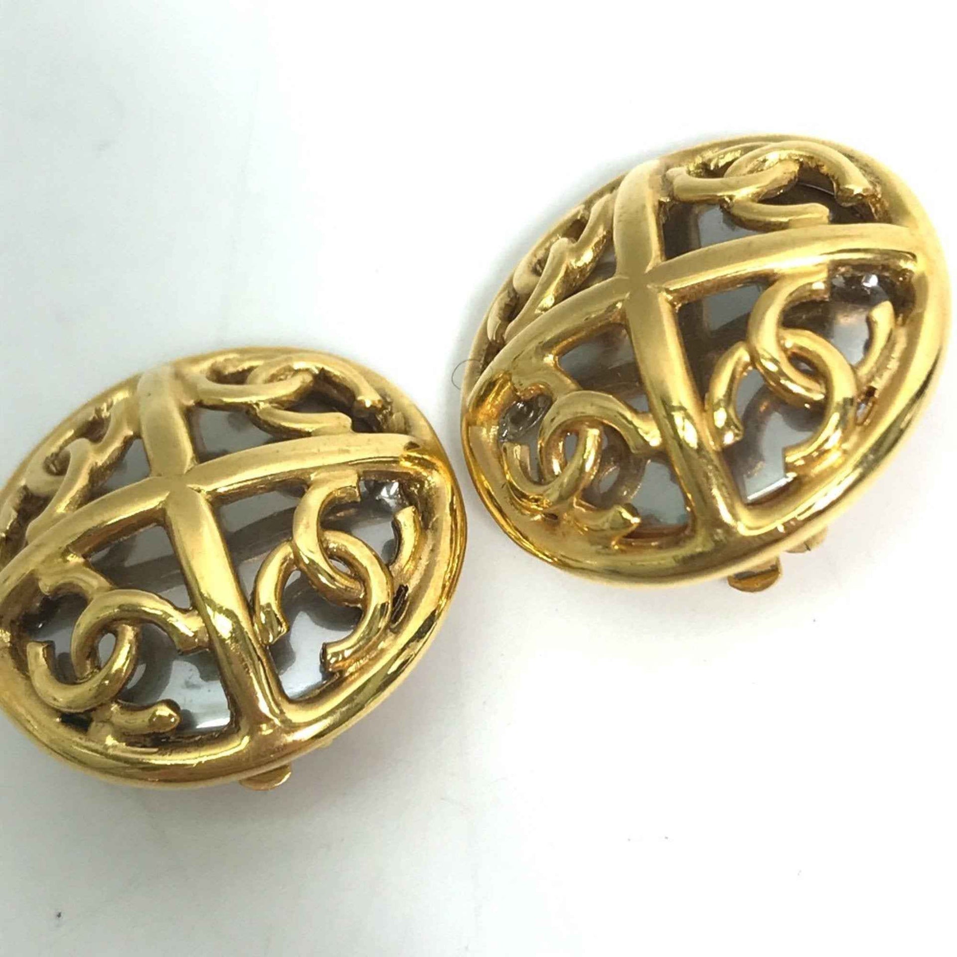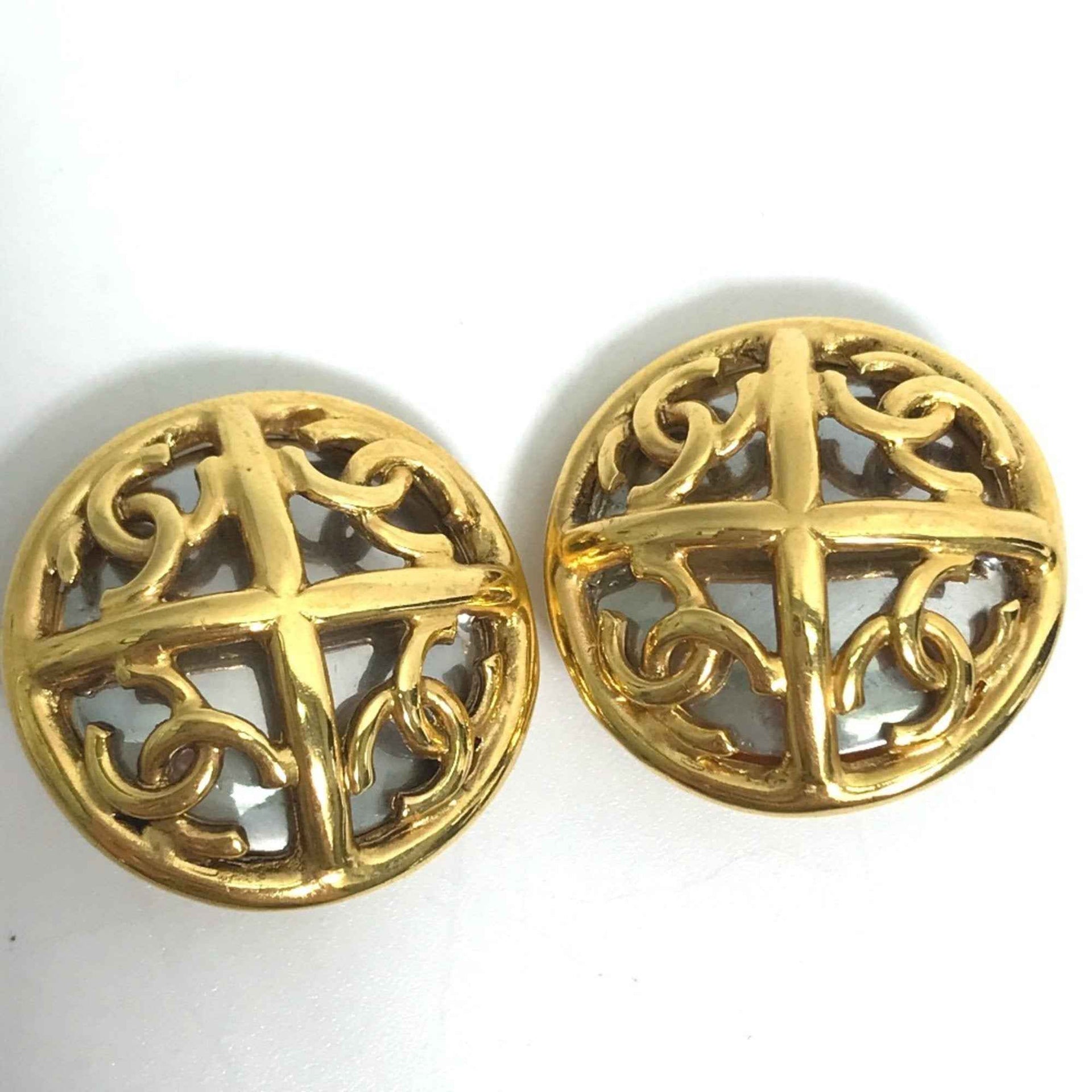 CHANEL 93P CC Coco Mark 4-Row Round Vintage Earrings, Metal, Women\'s, Gold