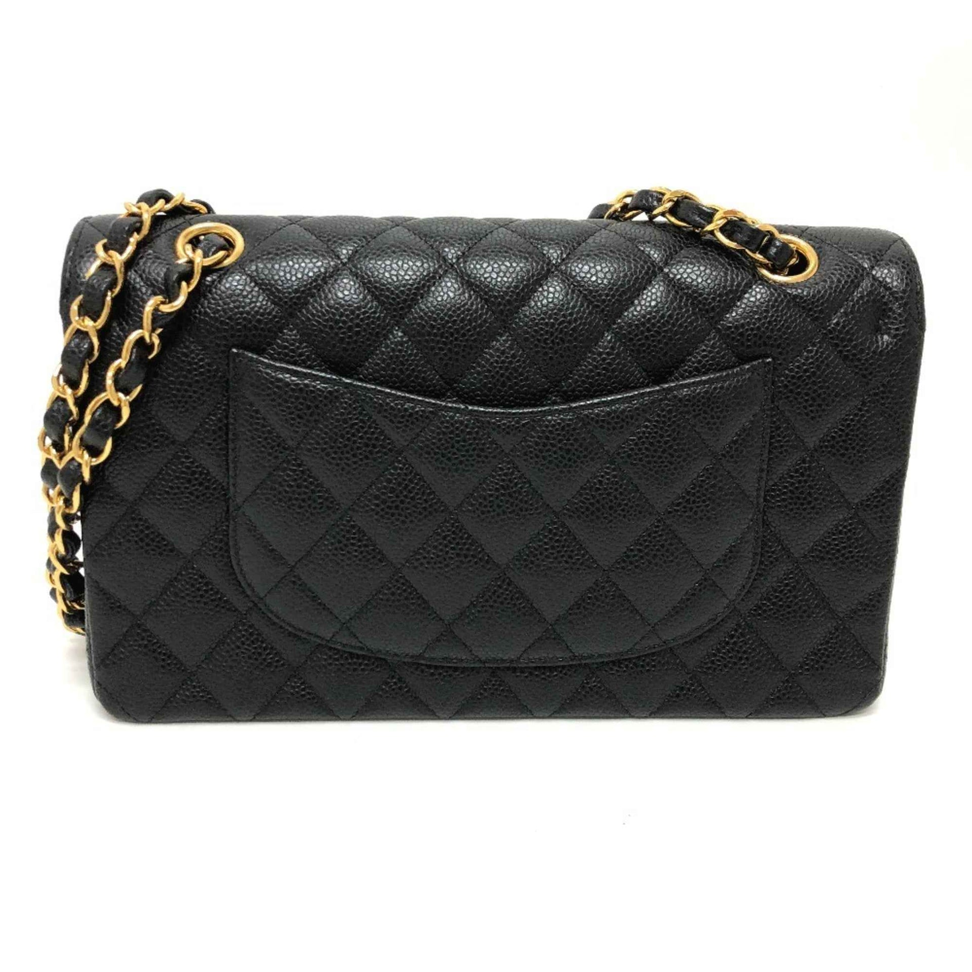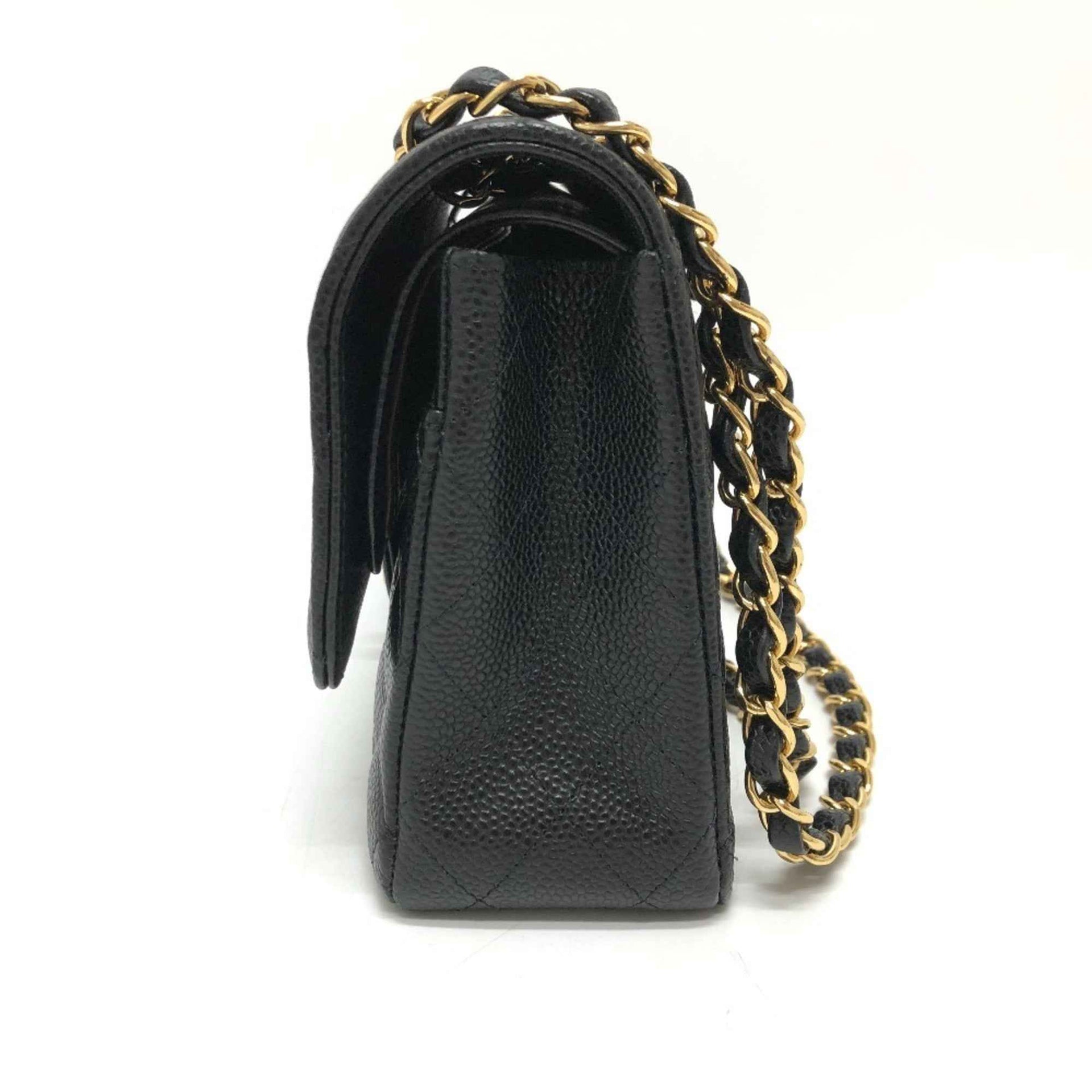 CHANEL A01112 Coco Mark CC Matelasse 25 Double Chain Shoulder Bag in Caviar Leather with Black Gold Hardware