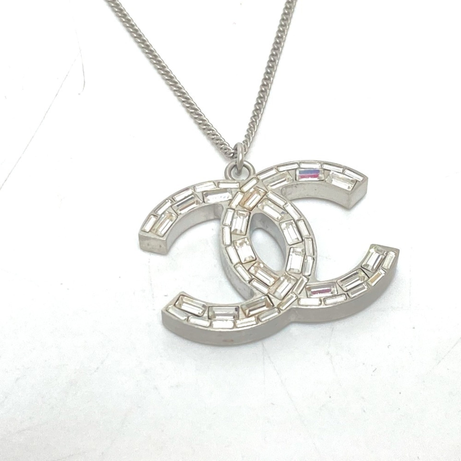 CHANEL A42254Y09569 B11P Coco Mark CC Accessory Rhinestone Pendant Necklace Metal Women\'s Silver