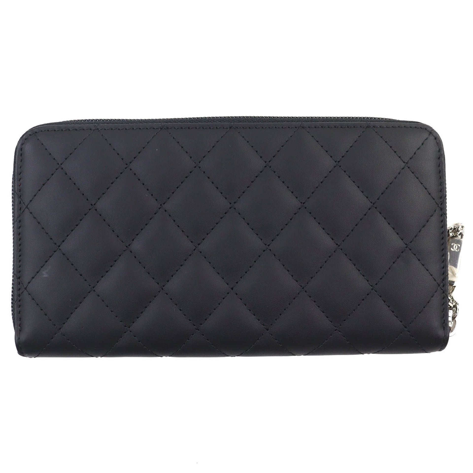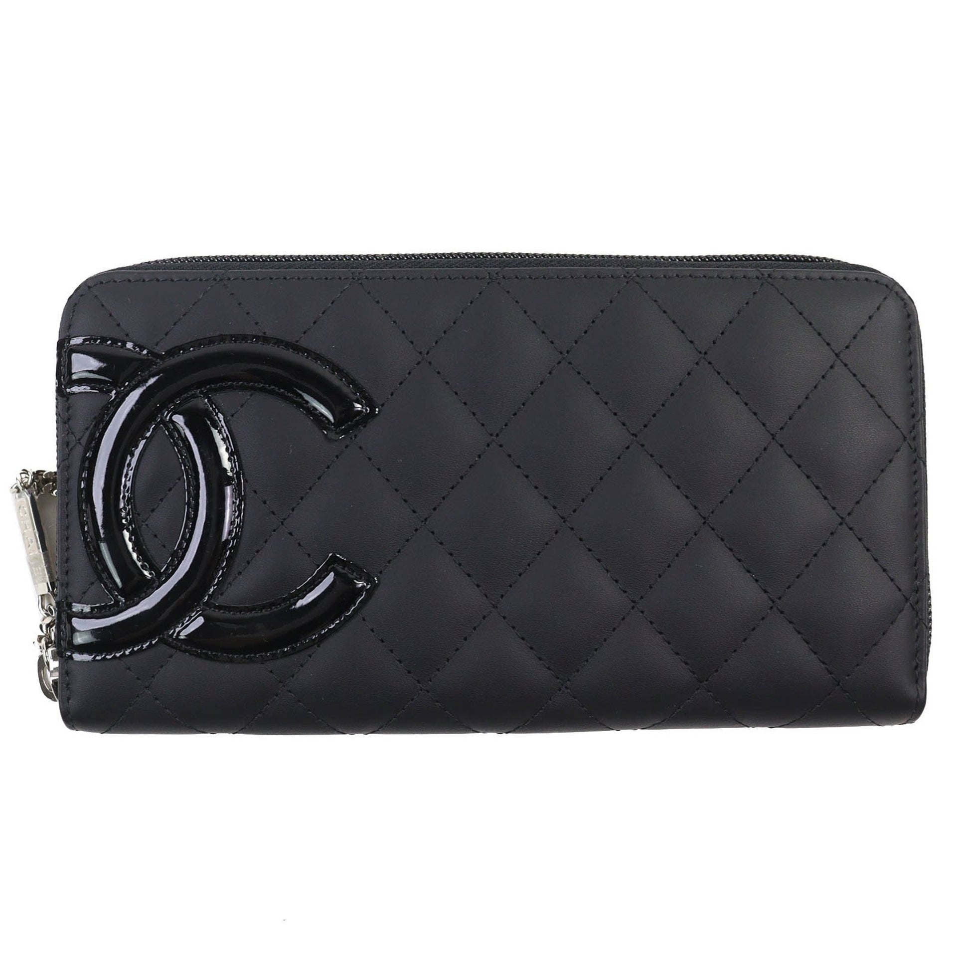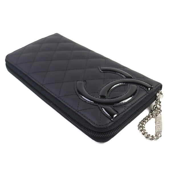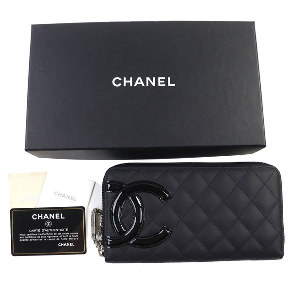 CHANEL A50078 Cambon Line Calfskin Enamel Coco Mark Round Zip Long Wallet Black Made in Italy Women\'s