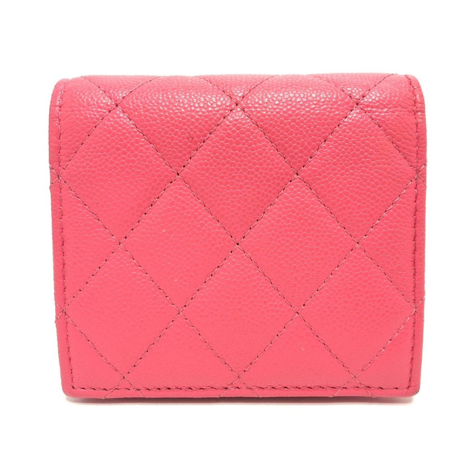 CHANEL AP3178 Matelasse Small Flap Wallet, Bi-fold Caviar Skin, Women\'s, Pink
